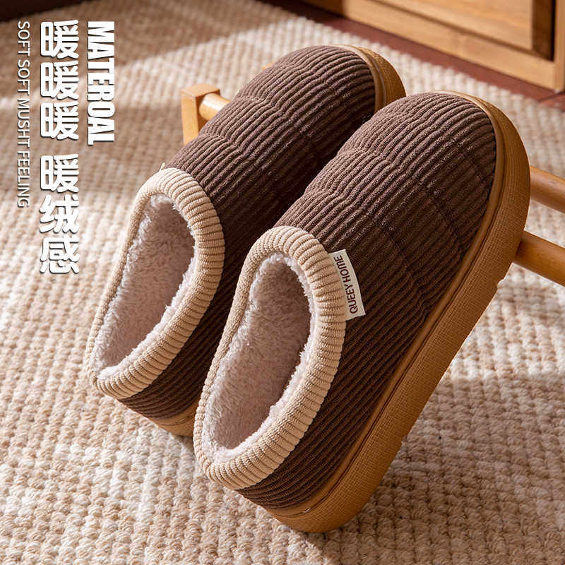 红豆踩屎感棉拖鞋女士秋冬季室内家居2025新款毛绒保暖情侣棉拖男
