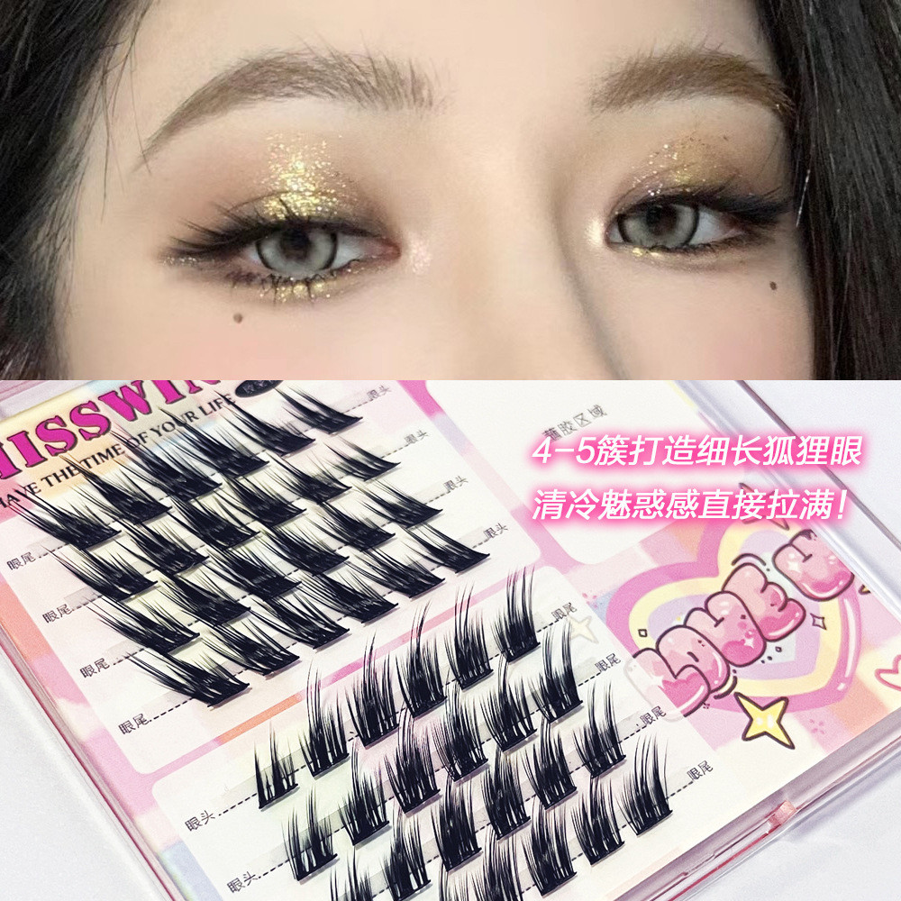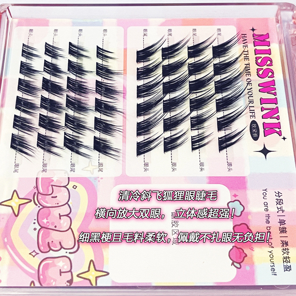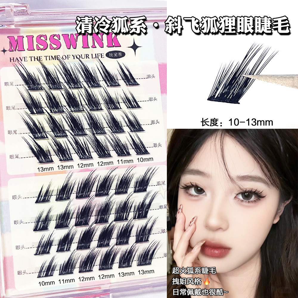 MissWink清冷狐狸狐系斜飞假睫毛女自然飞扬款欧美风单簇分段睫毛