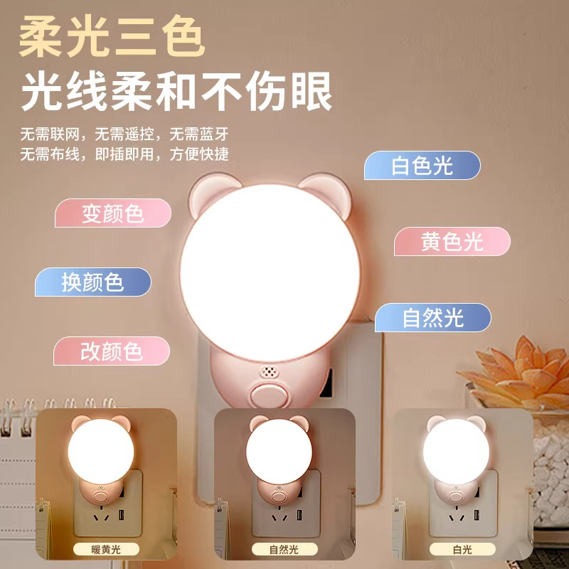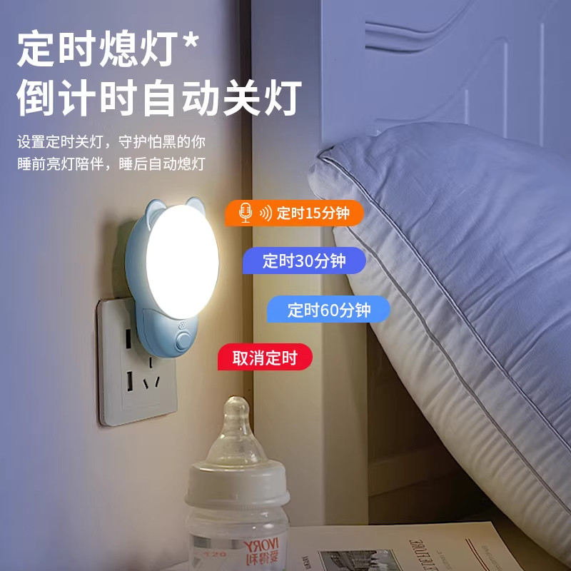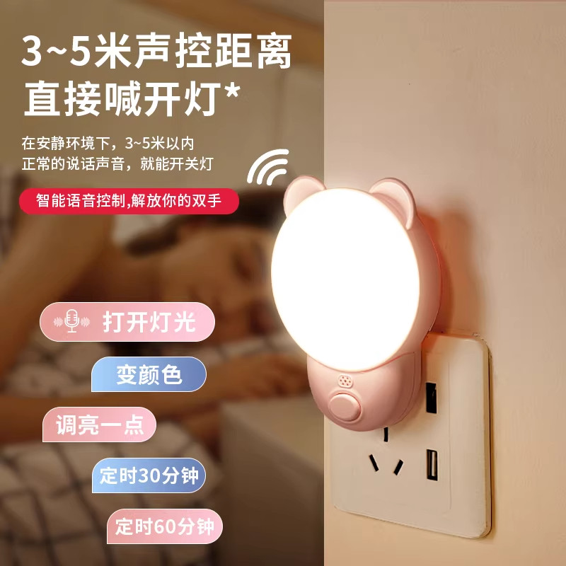 新款声控小夜灯智能卧室睡眠灯语音家用插电款遥控控制床头灯定时