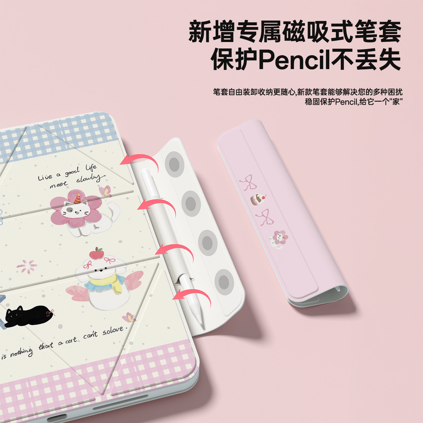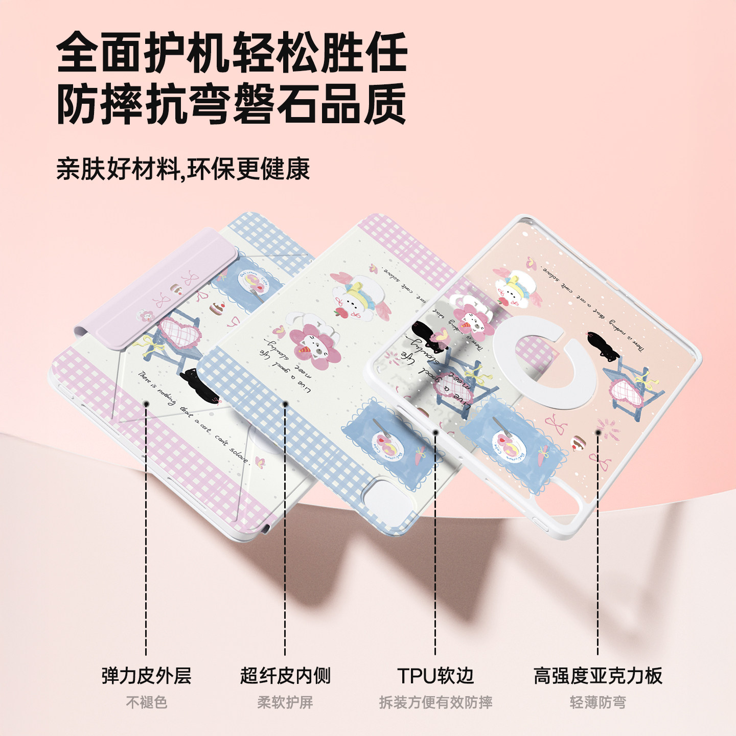 ipad11保护壳新款增高支架苹果air7磁吸拆分pro13全包防摔保护套透明平板壳5旋转6可爱10.9轻薄防摔mini7笔袋