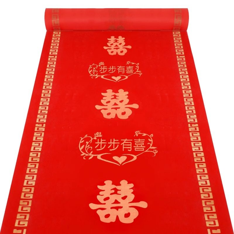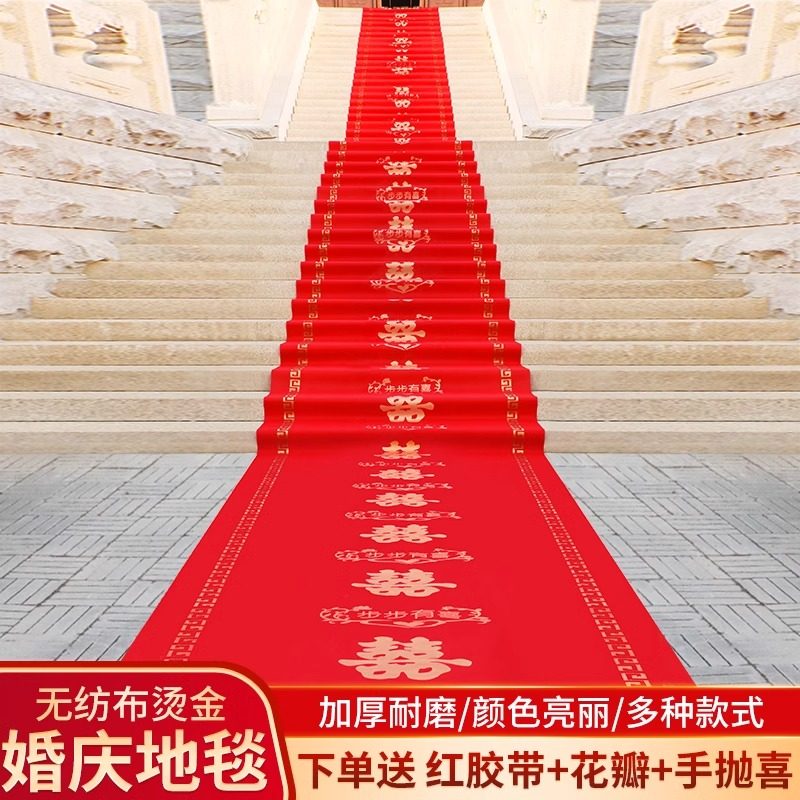 结婚红地毯一次性楼梯门口加厚无纺布喜字婚庆用品红色大地毯