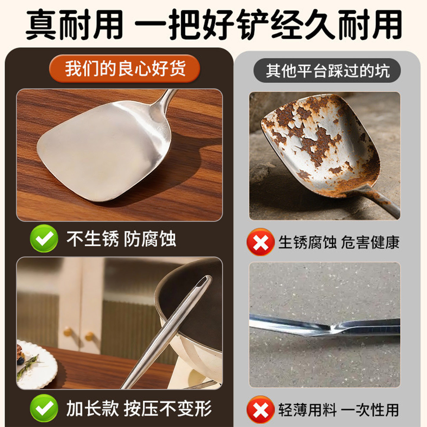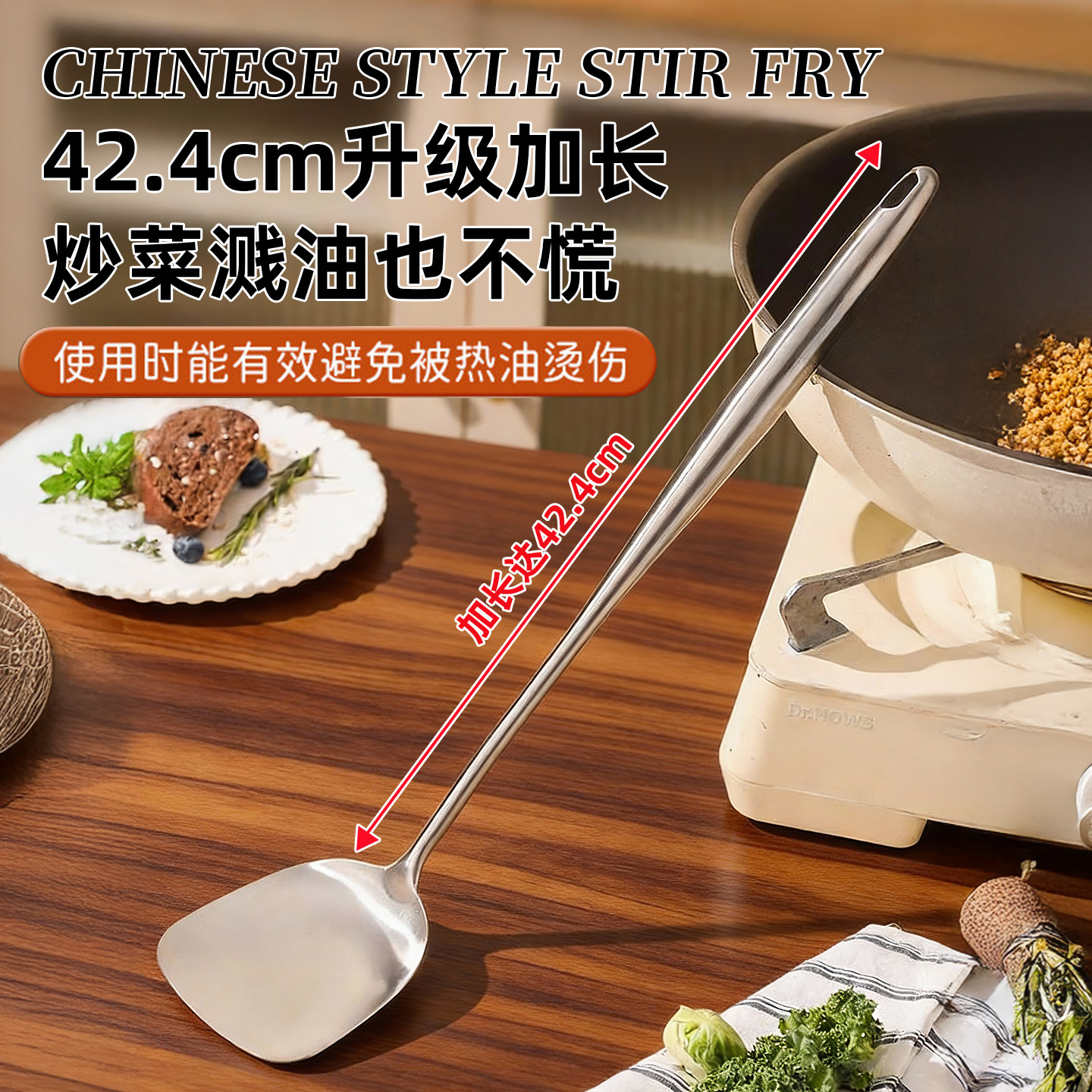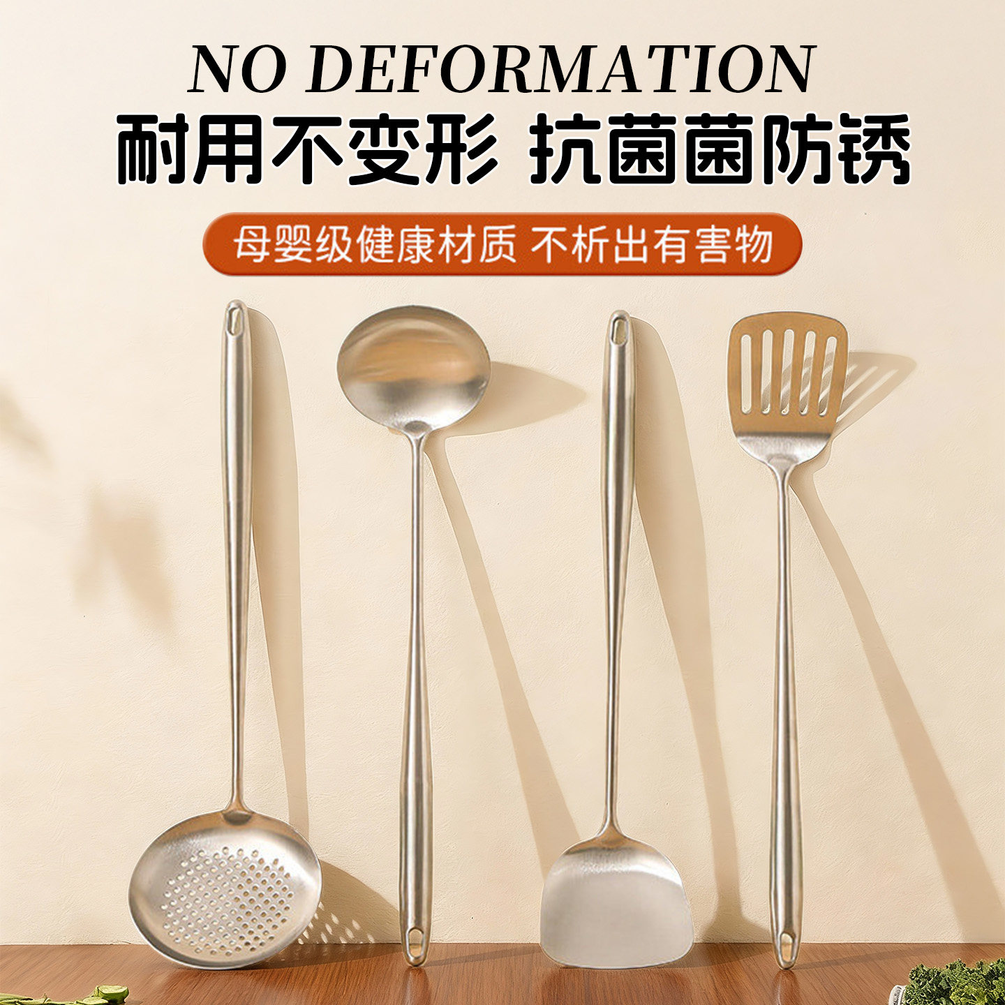316不锈钢锅铲家用炒菜铲子汤勺套装加长柄铁锅炒勺厨师专用铲