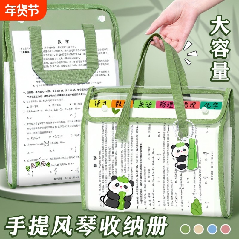 大容量透明插页收纳袋学生专用风琴包高颜值多层文件袋手提试卷整理神器收纳册初中高中生简约科目分类防水
