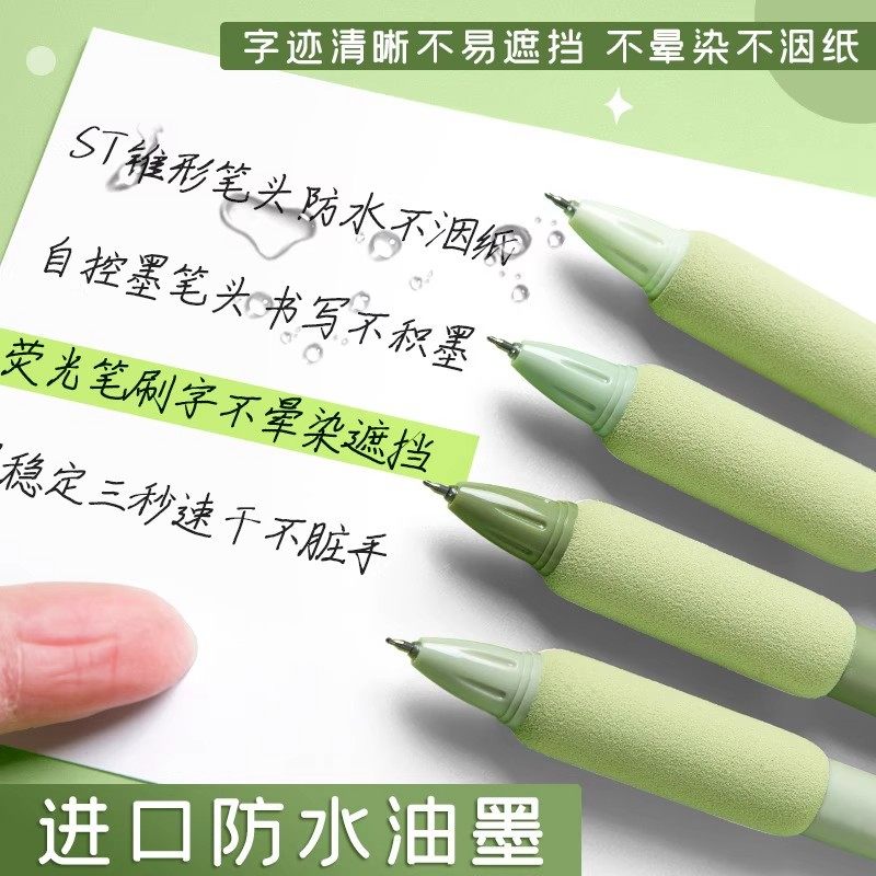 ST刷题笔高颜值按动中性笔圆珠笔黑色水笔小学生专用考试0.5速干碳素笔水性黑笔按压式做笔记签字笔非按斤卖