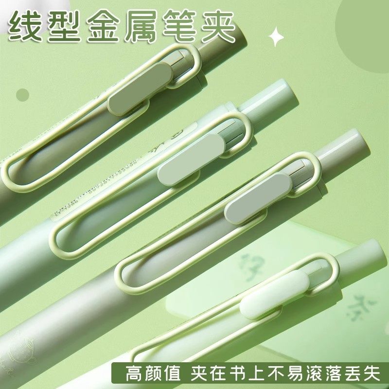 抹茶欧包刷题笔专用高颜值速干按动中性笔护套学生笔黑色少女心-B