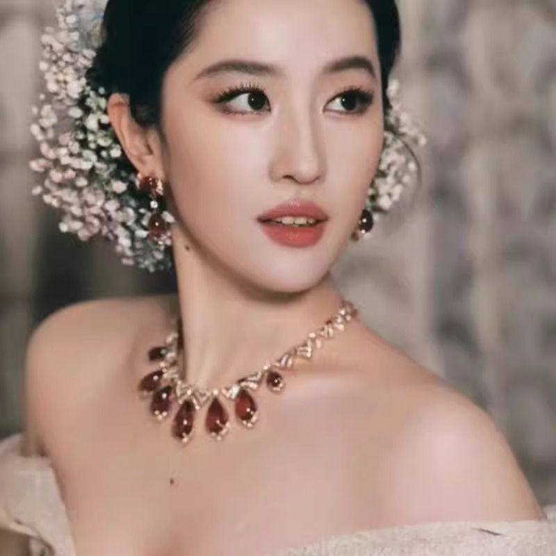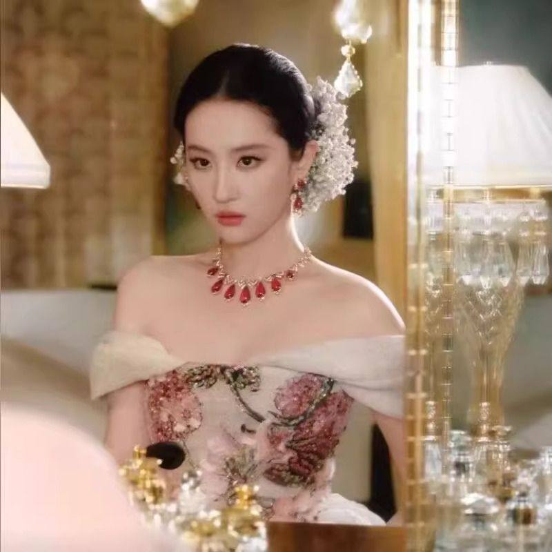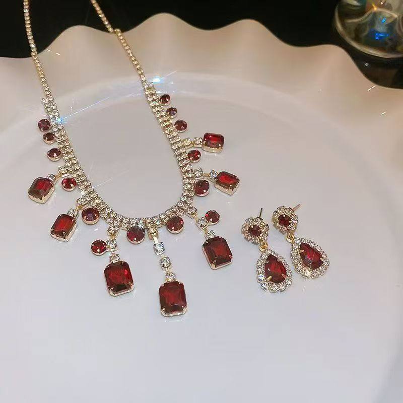 刘亦菲满天星同款红色方块项链女锁骨链套装生日礼服新娘晚会配饰