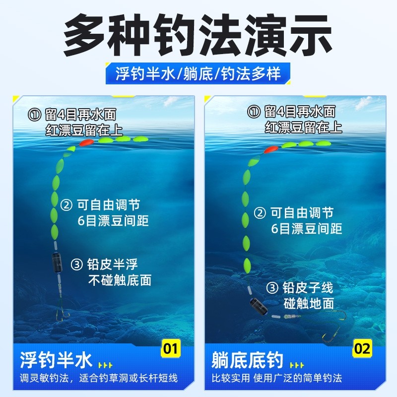 免调漂日夜立漂线组成品钓鱼线夜钓鱼漂套装绑好子线双钩鲫鱼主线