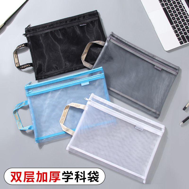 晨光文具学科科目分类袋小学生文件袋拉链式试卷收纳袋透明网纱双层大容量书袋作业资料a4考试专用袋票据产检