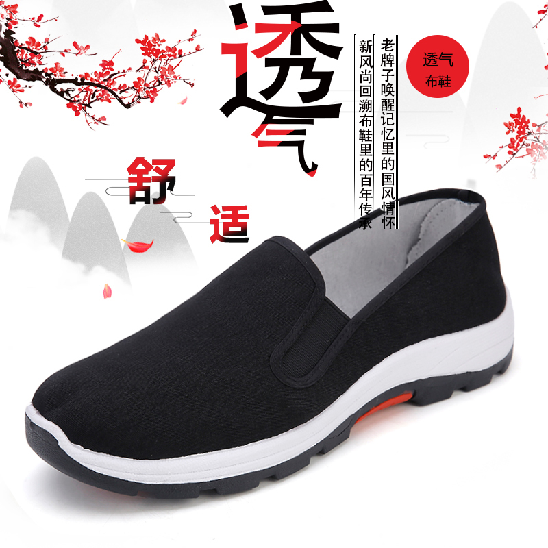 老北京布鞋中老年一脚蹬休闲鞋透气舒适男士爸爸鞋防滑传统鞋耐磨