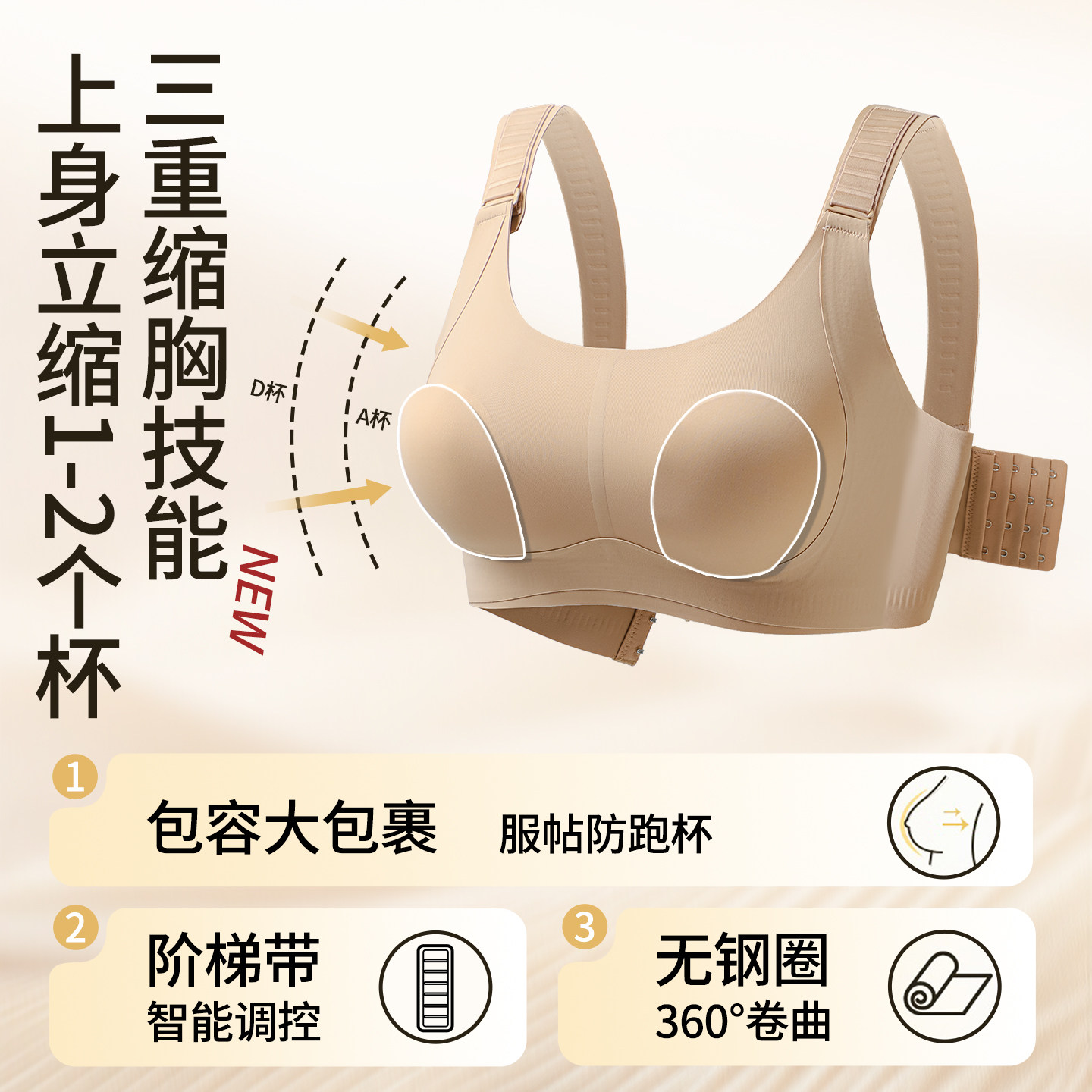 7档可调节提拉防下垂内衣女大胸显小胸薄款