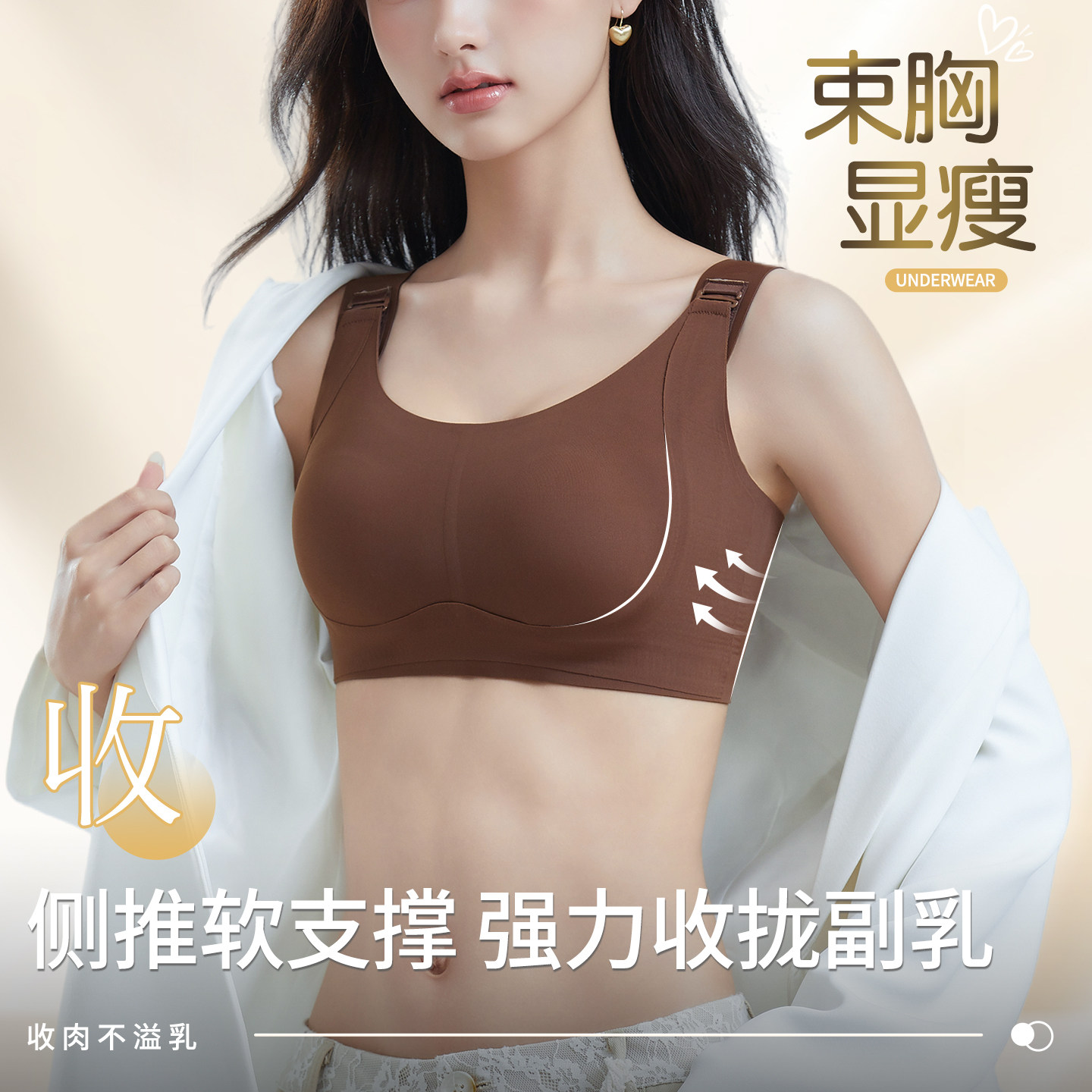 润微提拉内衣女大胸显小无痕提拉防下垂聚拢收副乳胸罩爆款文胸