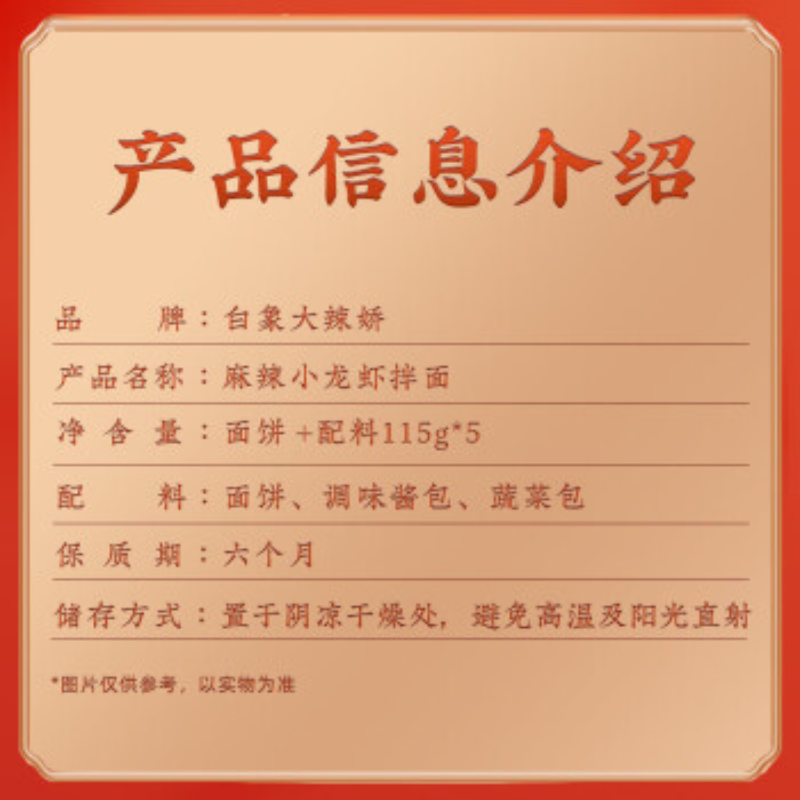 白象大辣娇麻辣小龙虾拌面115克*2+红烧牛肉75克*3