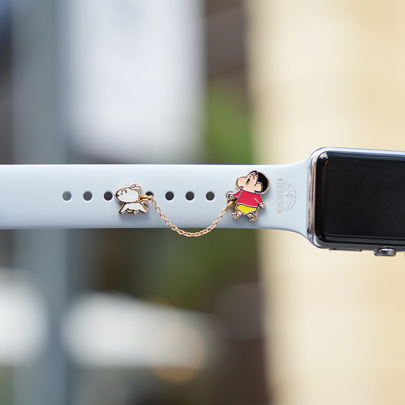 【蜡笔小新联名正品】魔赞牵小白适用于Apple Watch卡通日系可爱手表带装饰扣小PIN套装金属链条徽章情侣礼物