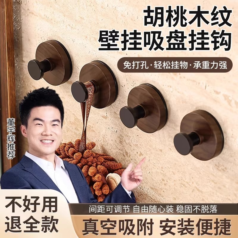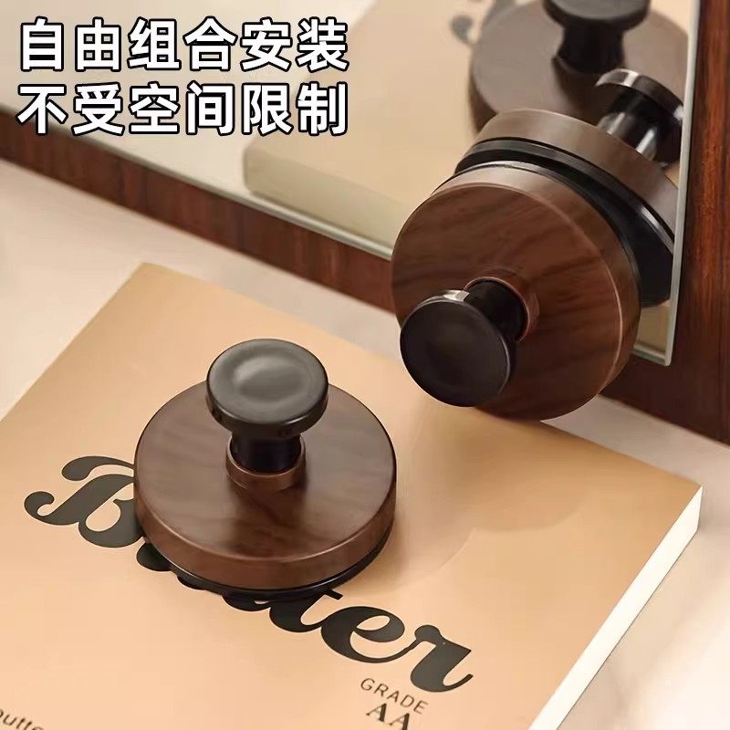 胡桃木纹吸盘旋钮挂钩门后浴室厨房壁挂式置物架免打孔挂衣钩挂架