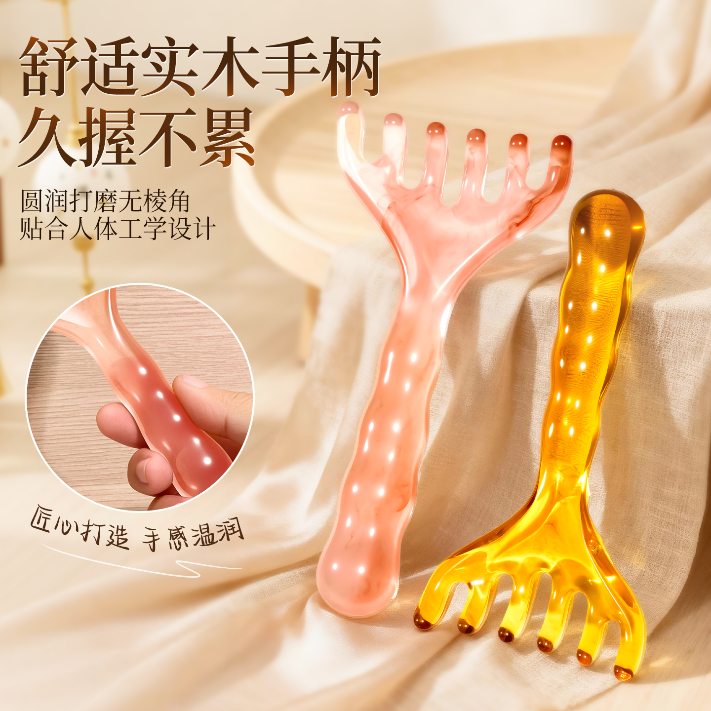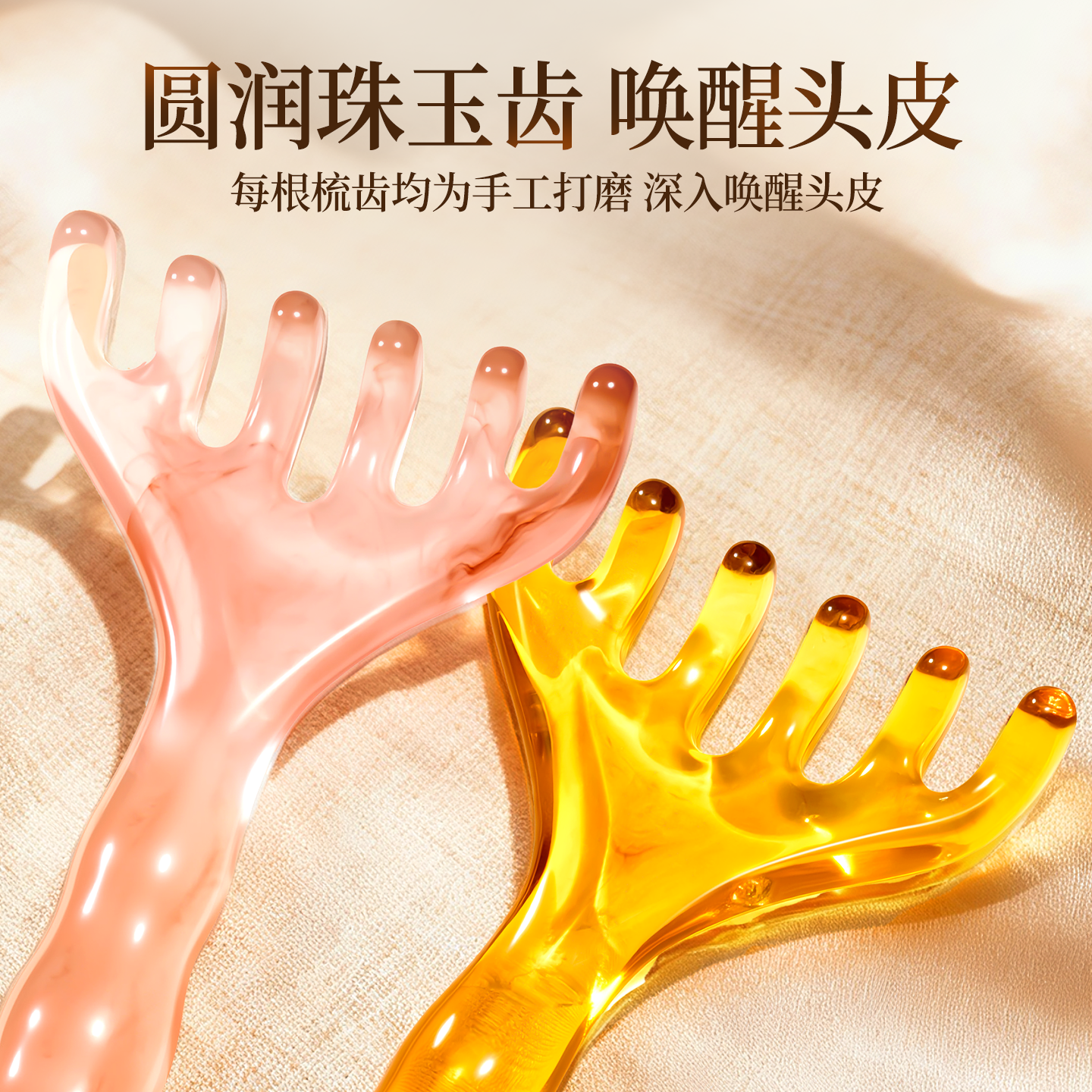 琥珀按摩梳头皮经络梳优质树脂头部头疗脱发脸部提拉刮痧神器疏通