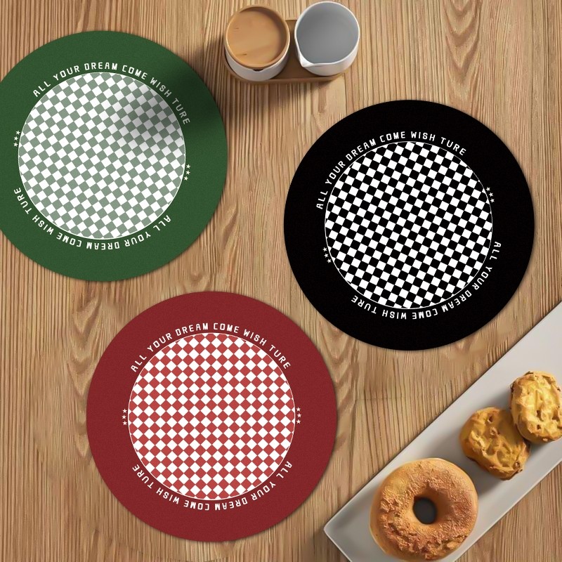 北欧棋盘色餐垫隔热垫易清洗防滑防烫卡通动物茶几加厚杯垫碗垫子
