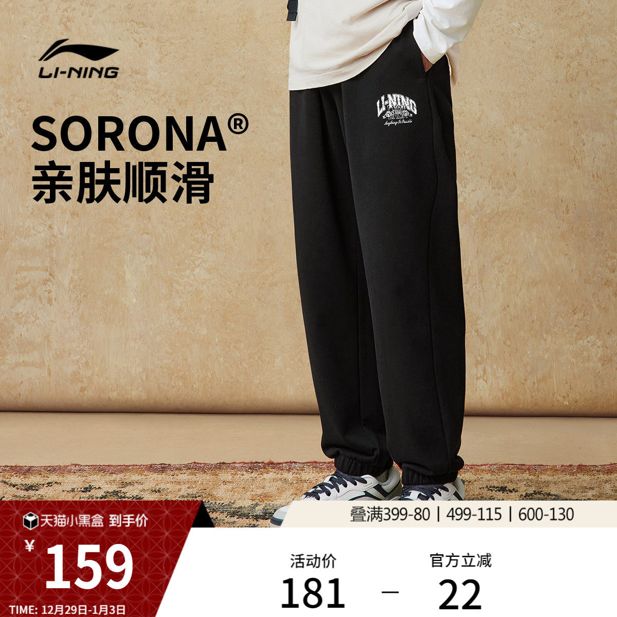 李宁运动裤男士休闲宽松裤子复古潮流卫裤透气针织印花运动长裤男