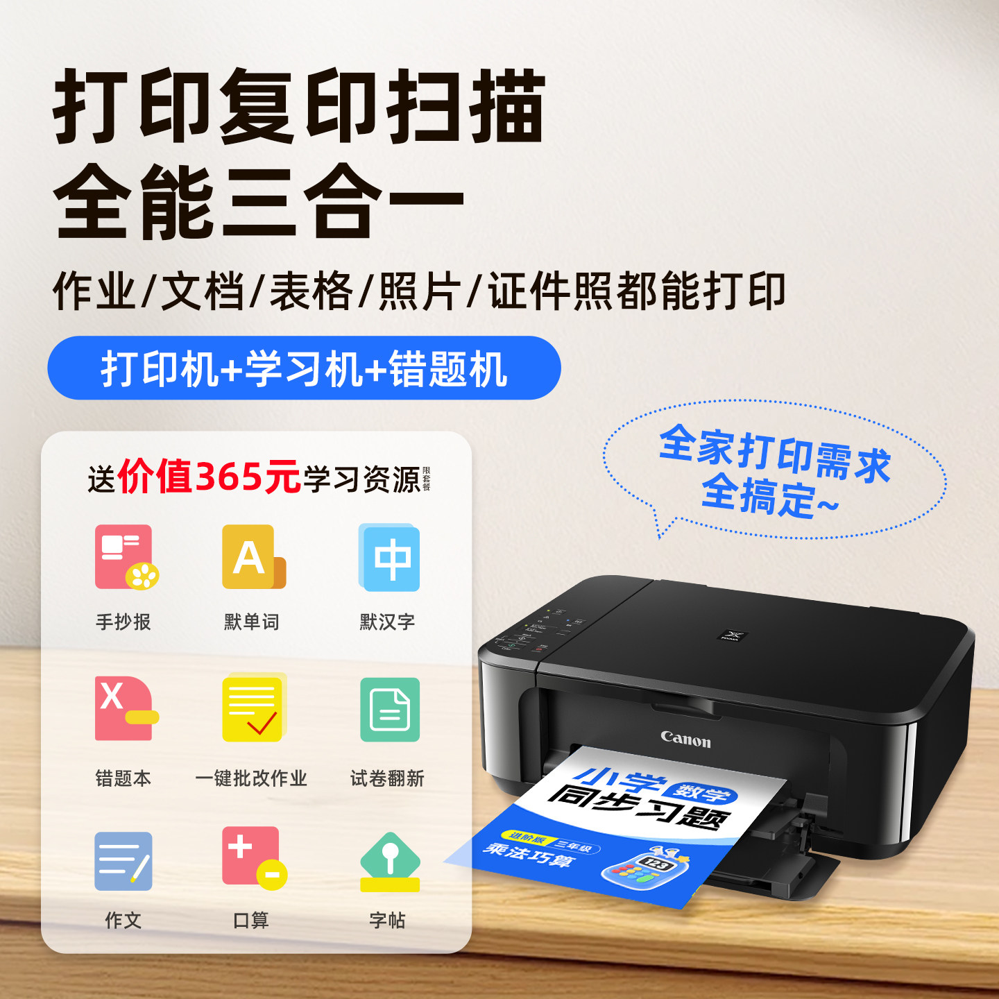 佳能mg3680家用小型打印机彩色喷墨复印扫描手机无线wifi蓝牙办公专用自动双面一体机学生迷你a4照片作业试卷