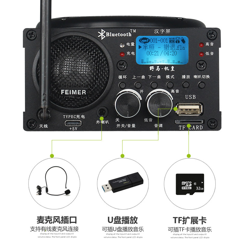 新款野马扩音器小钢炮机皇版双喇叭户外大音量远程遥控仿声播放器