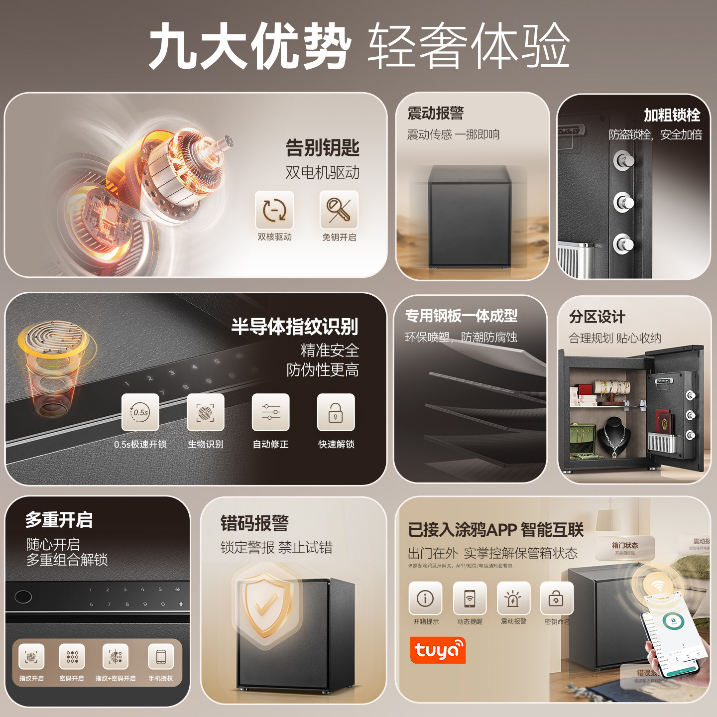 2025新品 涂鸦智能 床头保险箱 指纹密码