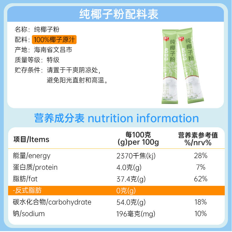 春光食品海南特产国货纯椰子粉散装椰奶椰汁粉植物蛋白冲饮早餐