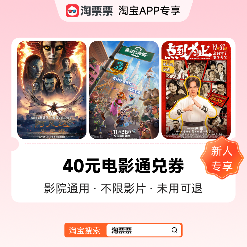 【新人专享】40元电影票通兑券 影院通用 不限影片