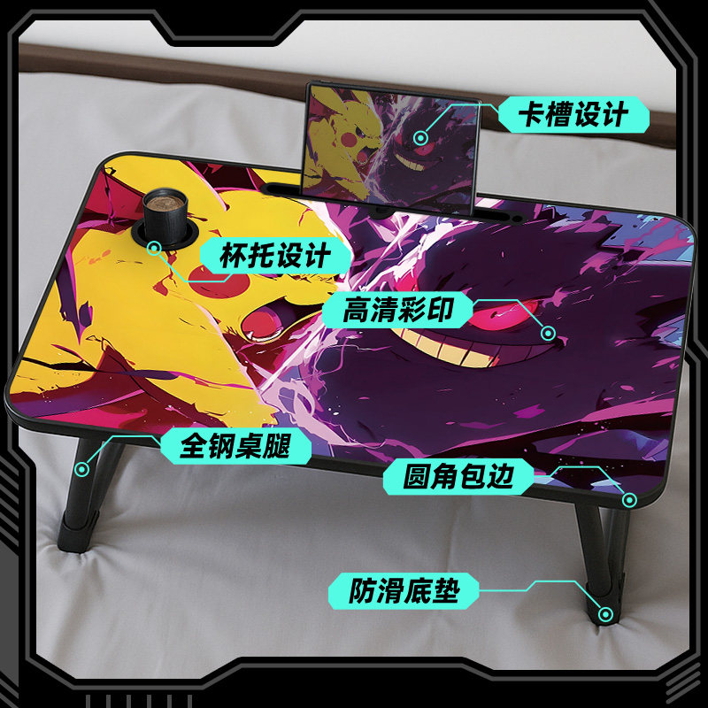 宝可梦床上小桌子可折叠动漫耿鬼二次元笔记本电脑桌小学生学习桌学生宿舍上铺懒人神器卧室坐地小桌板电脑台