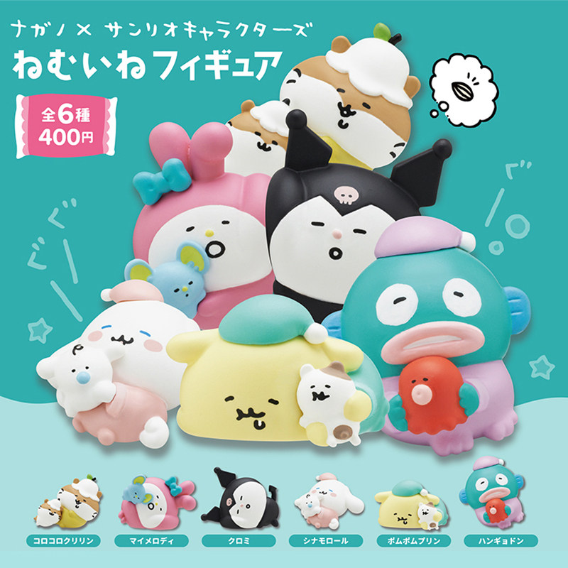 日本正版奇谭 三丽鸥×自嘲熊联名款睡眠造型扭蛋 库米洛美乐蒂