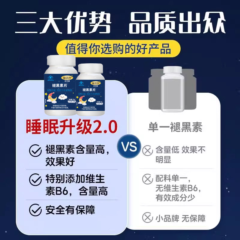 褪黑素维生素b6片安心助眠学生改善睡眠退黑色素非软糖安眠睡眠片