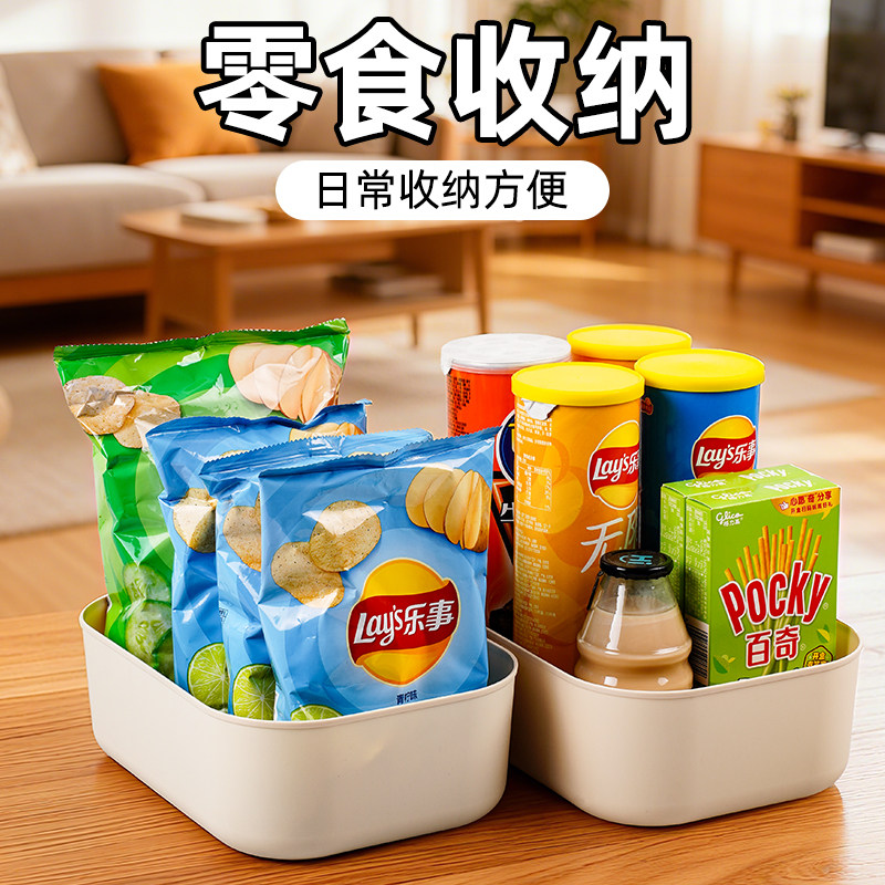 杂物收纳筐化妆品口红收纳盒零食整理盒家用厨房储物盒子塑料桌面