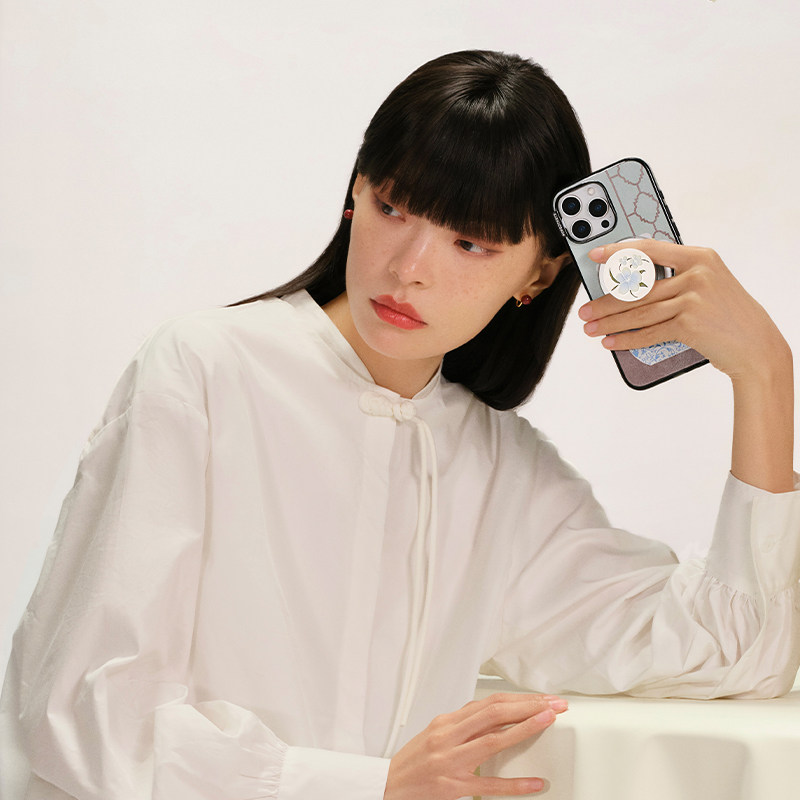 【灵蛇之珠·手机壳】PopSockets泡泡骚手机支架气囊伸缩防摔手机壳 中国新年 福禄 兰花 蓝白 多宝花镜