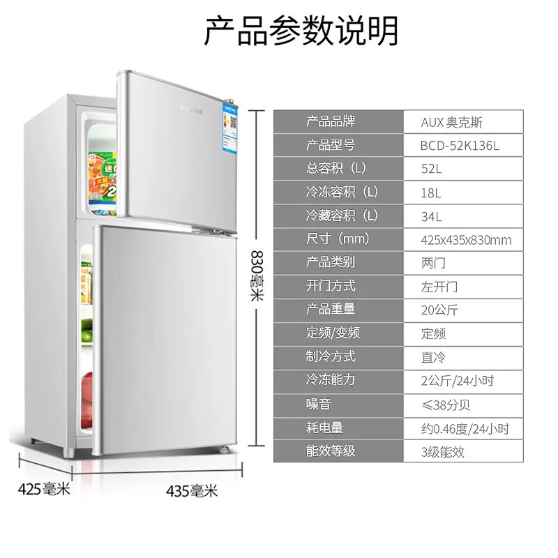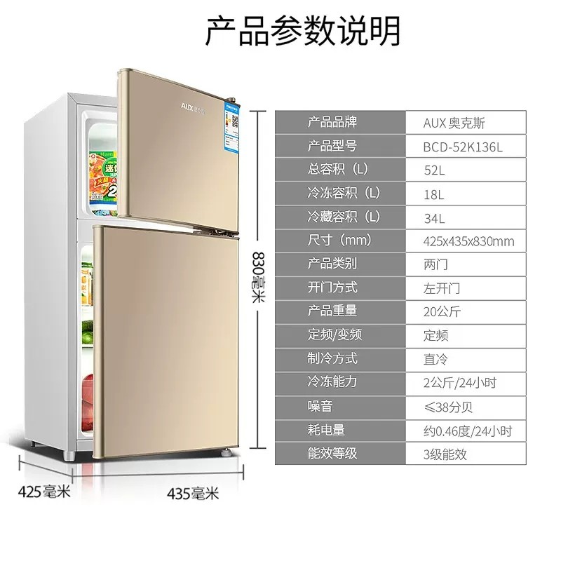 奥克斯一级节能小冰箱家用小型办公室租房冷藏冷冻抗菌低噪电冰箱