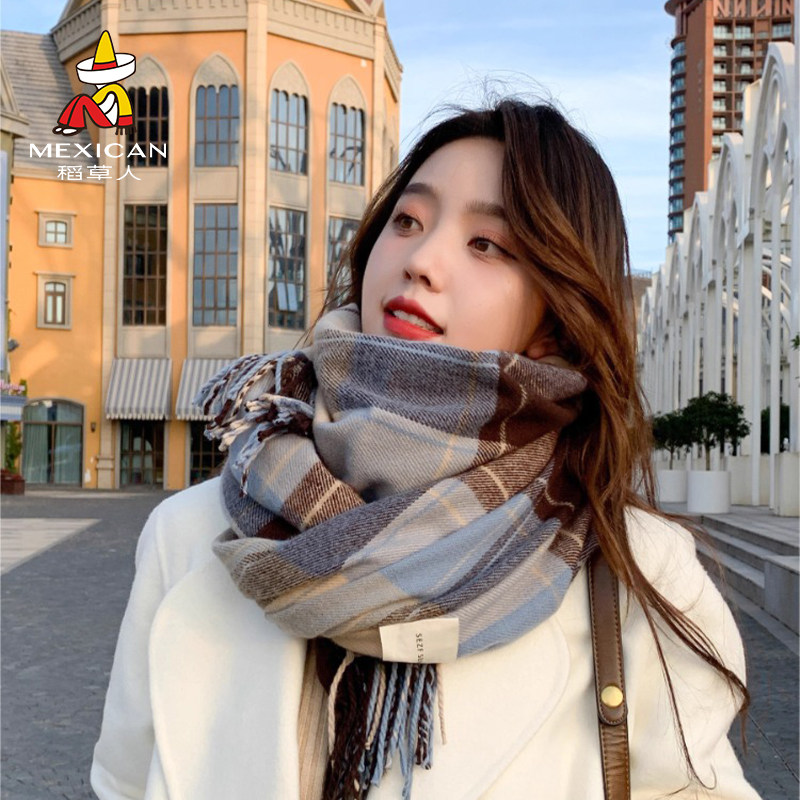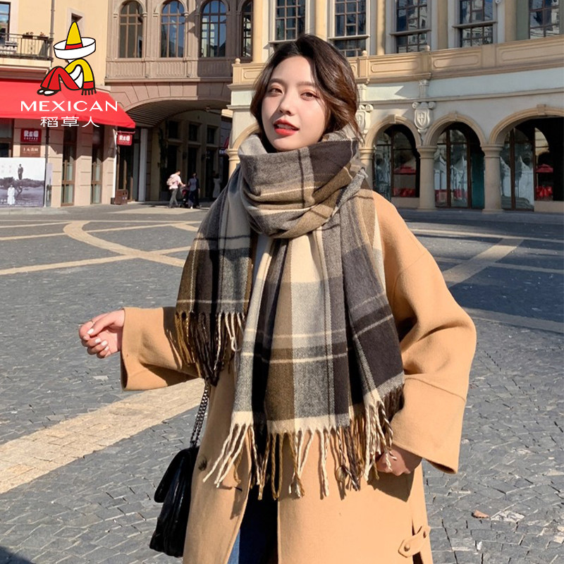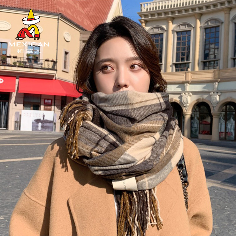稻草人美拉德围巾女2025新款冬季高级感格子披肩情侣保暖围脖加厚