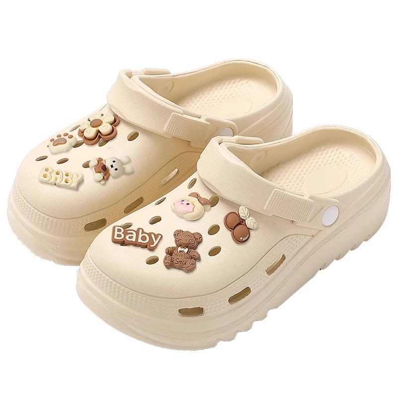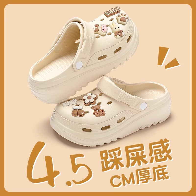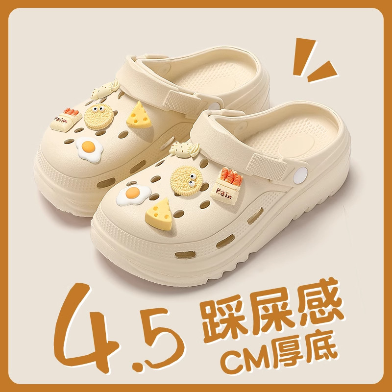 厚底洞洞鞋女款夏季外穿2025新款防滑沙滩鞋踩屎感包头半拖鞋女士