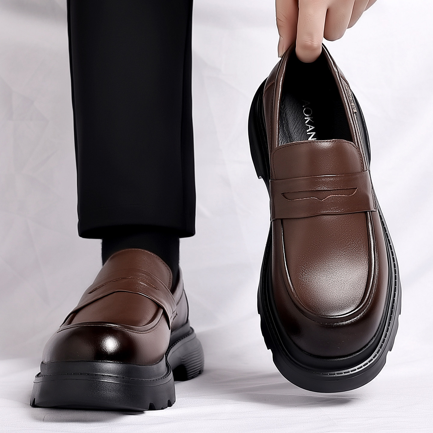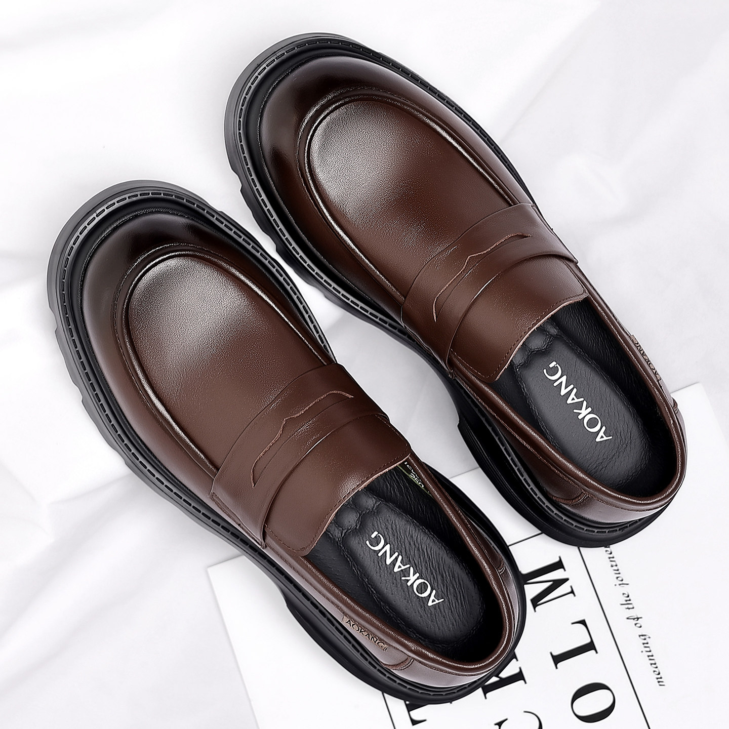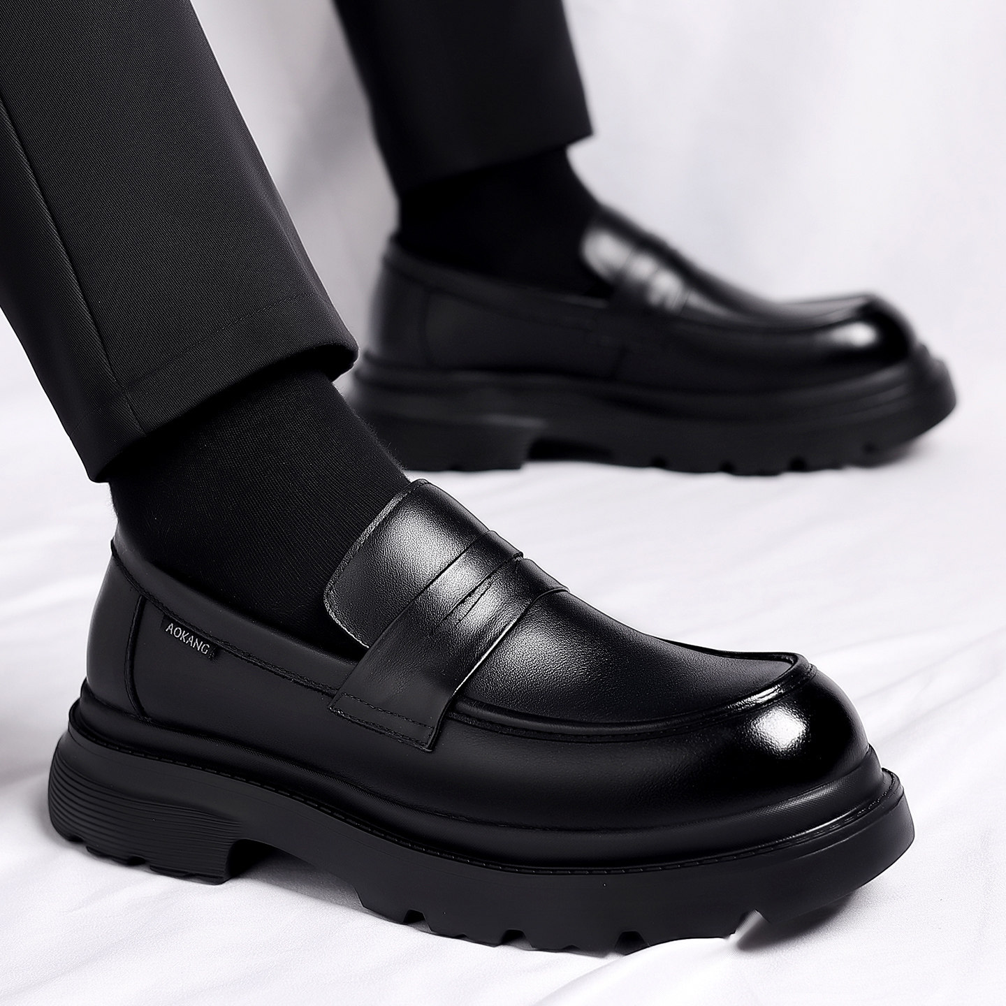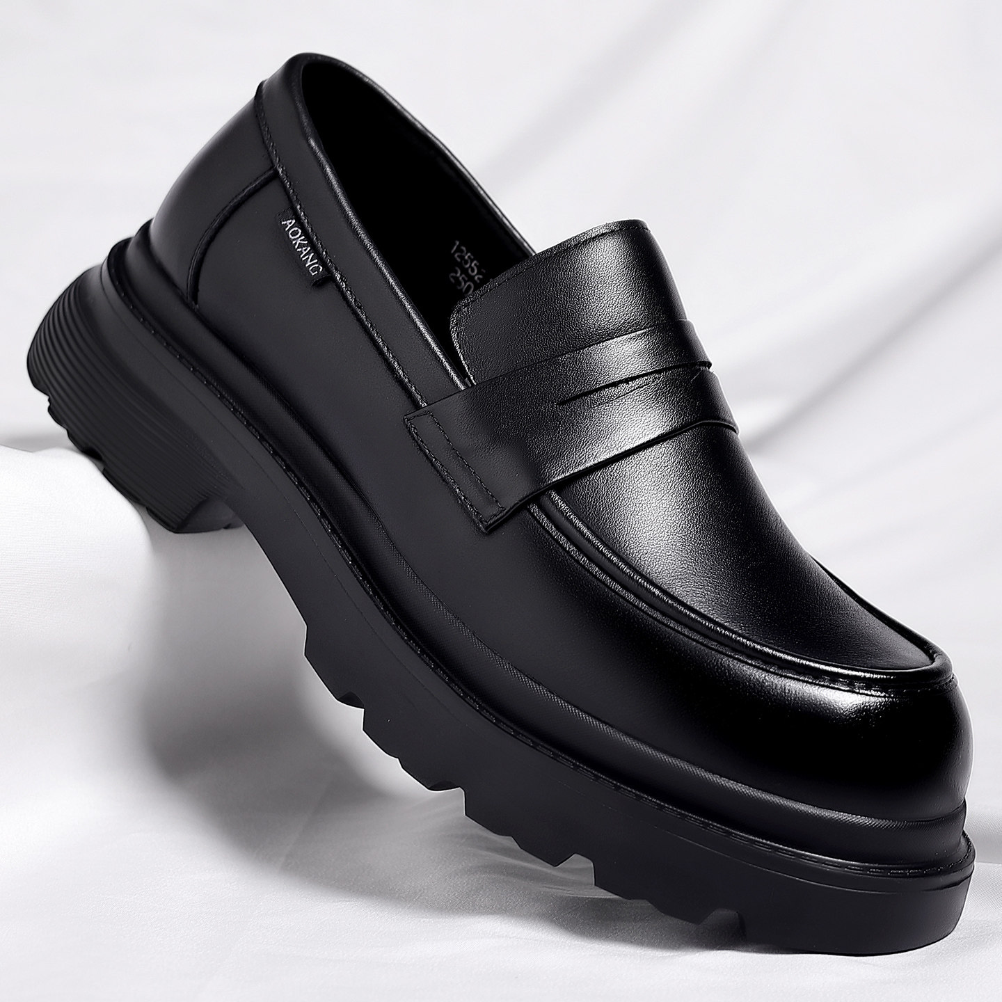 【小牛皮】青润chioryn袋鼠鞋男黑色真皮增高厚底休闲通勤风皮鞋