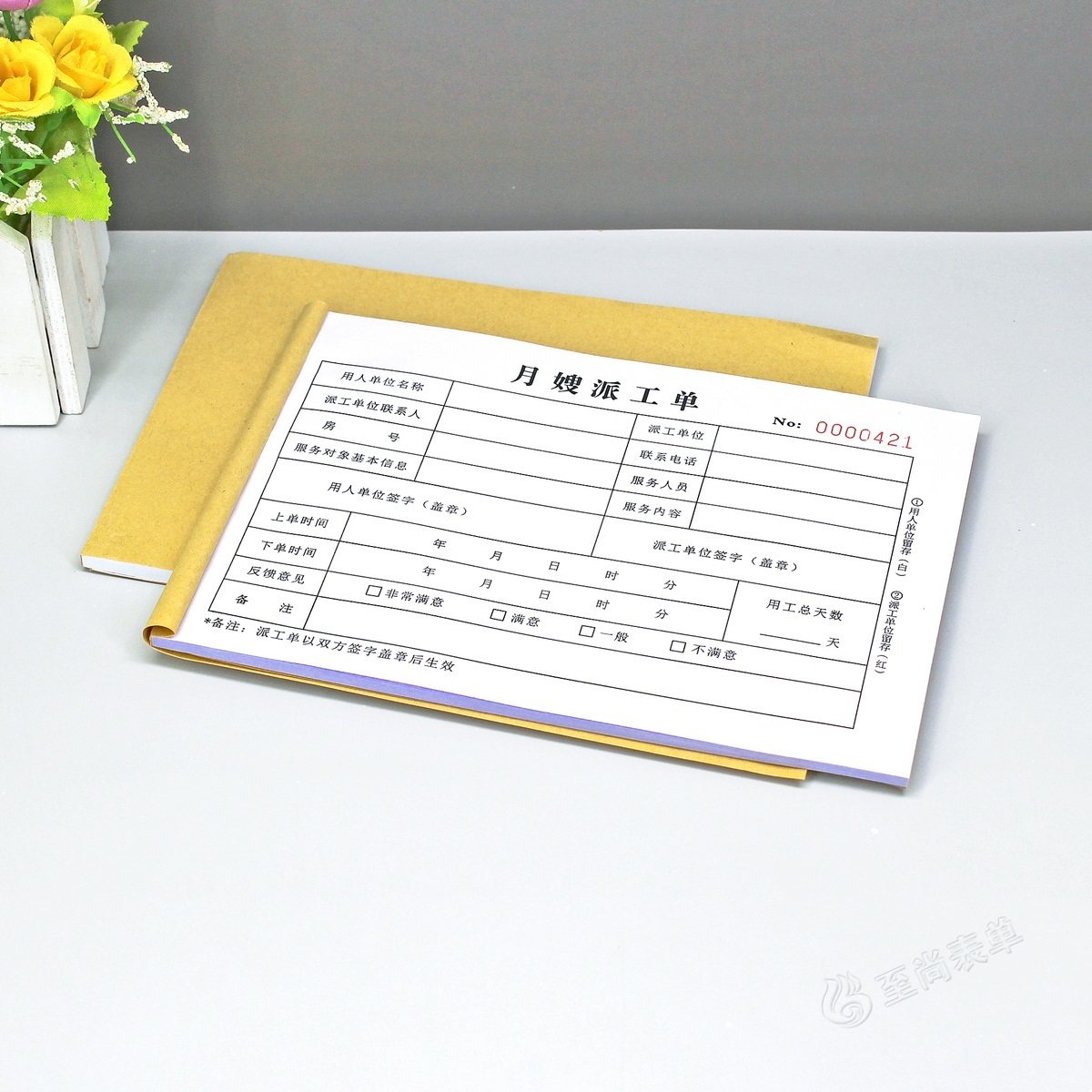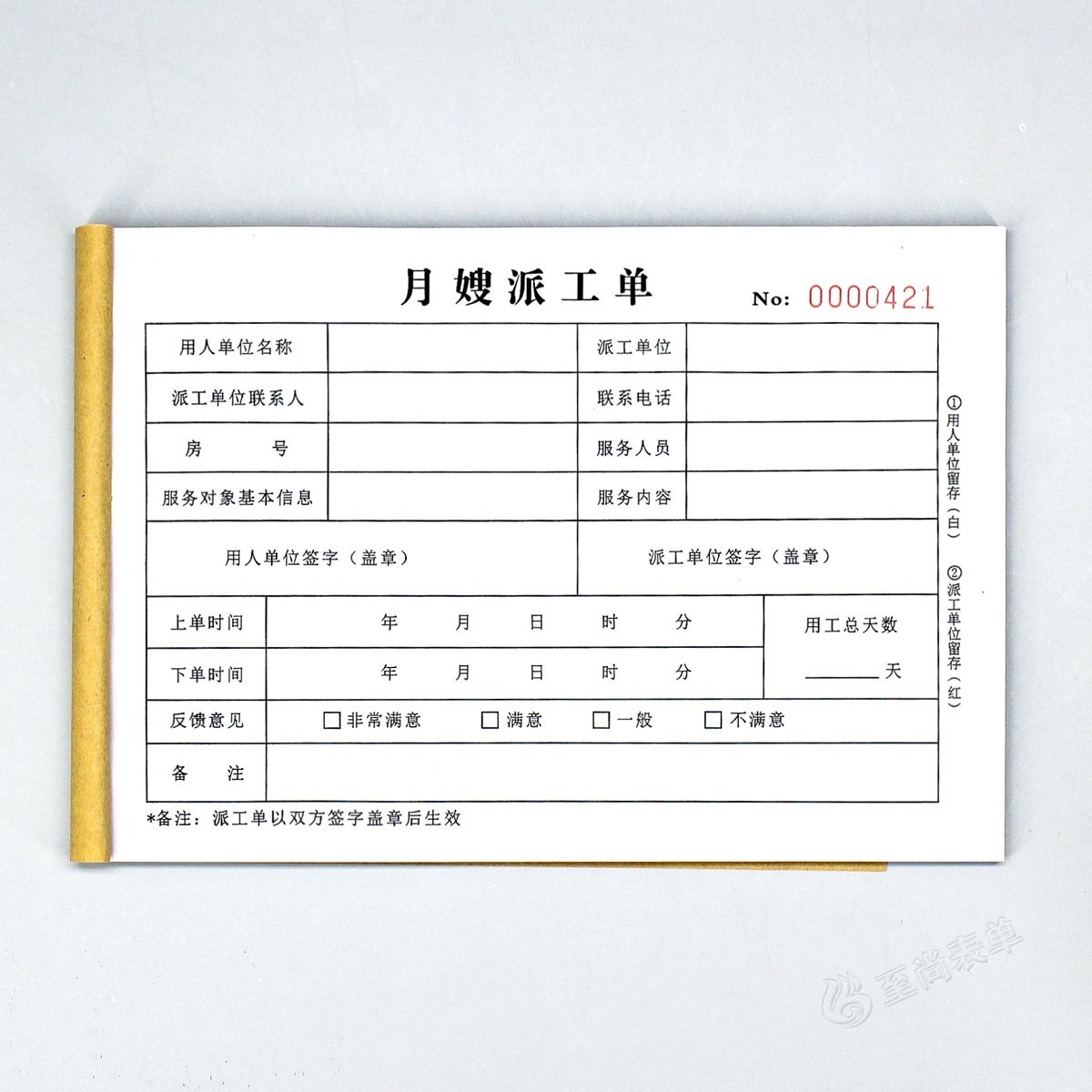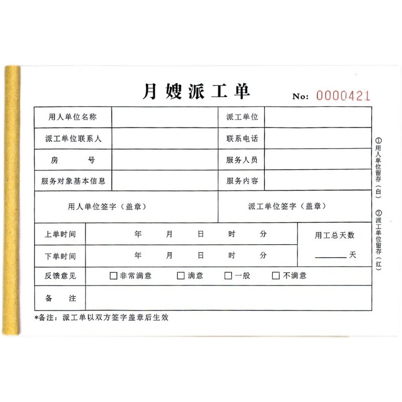 家政服务月嫂派工单二联三联月子中心母婴生活护理员用工确认单据