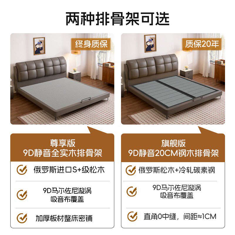 轻奢真皮床家用卧室1.8米双人床现代简约软包床高端大气储物婚床