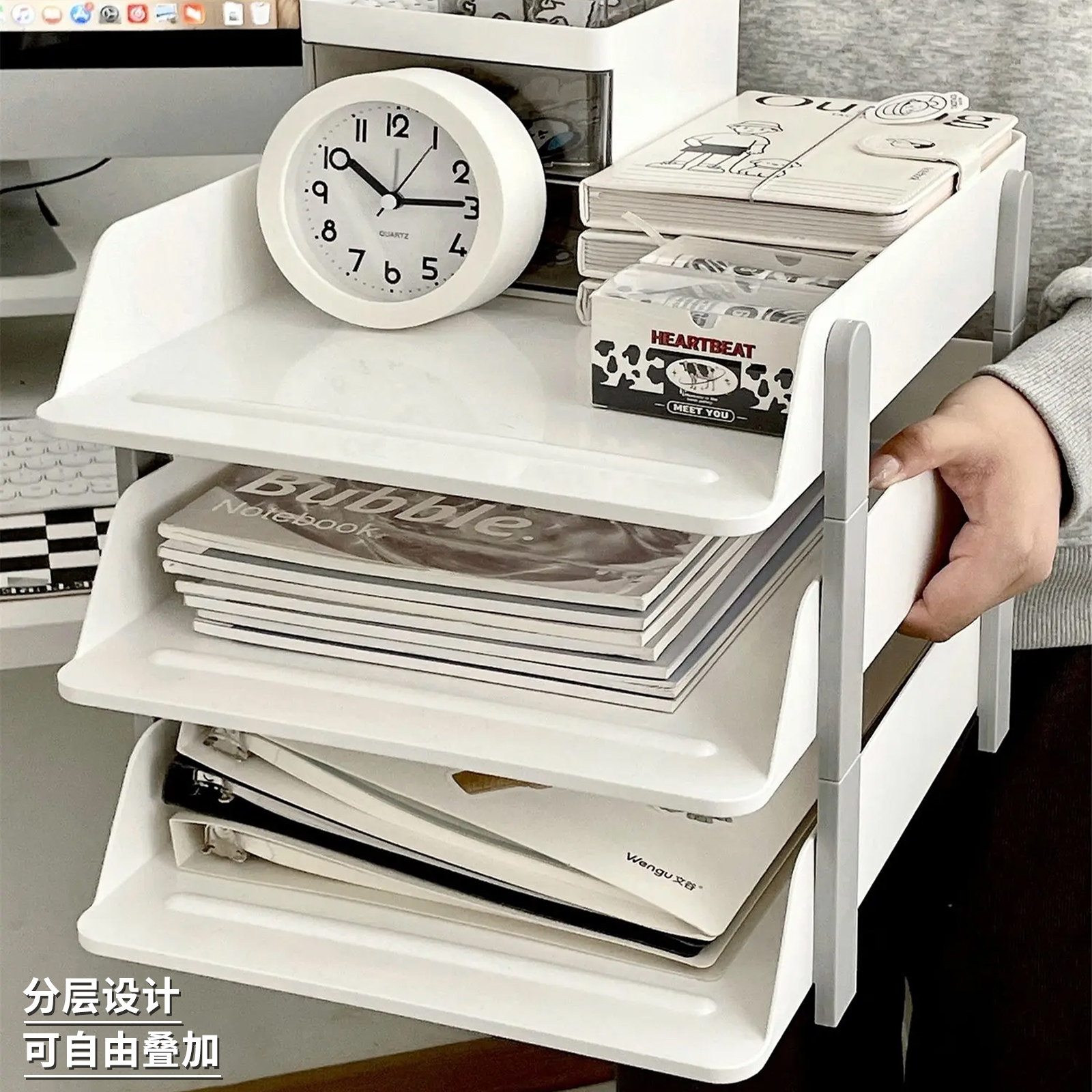 办公桌文件收纳架置物架夹学生书桌桌面书架收纳神器档案资料分层收纳盒书立办公室材料整理好物a4彩色收纳框