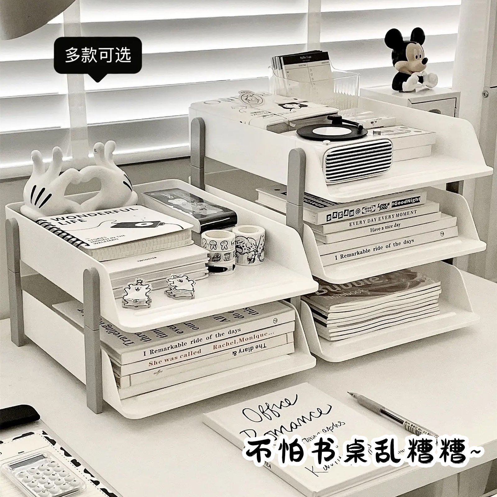 办公桌收纳置物架文件收纳盒办公用品文件架桌面书架多层大容量文件框文件夹A4纸资料档案整理架金属书立架