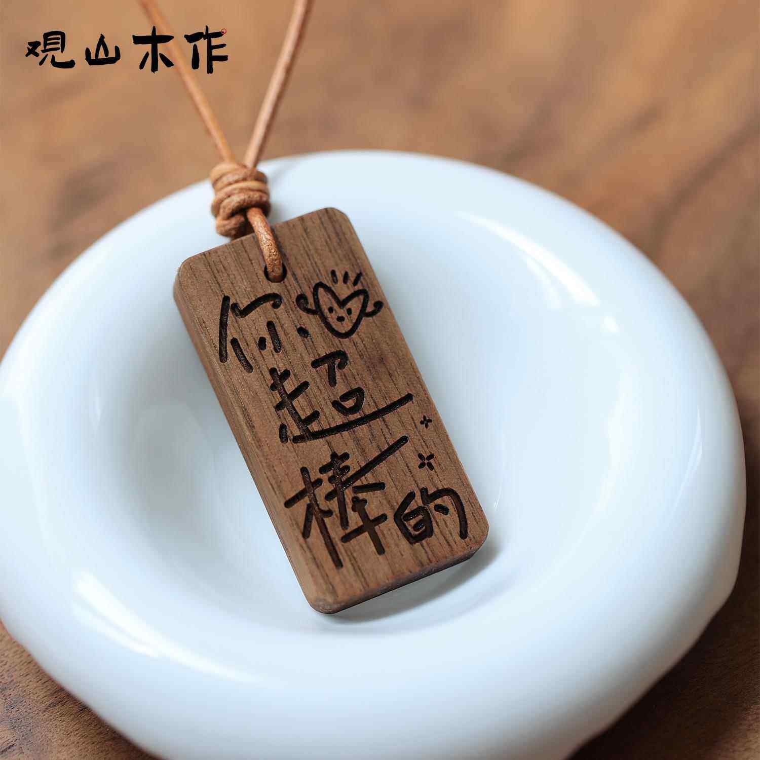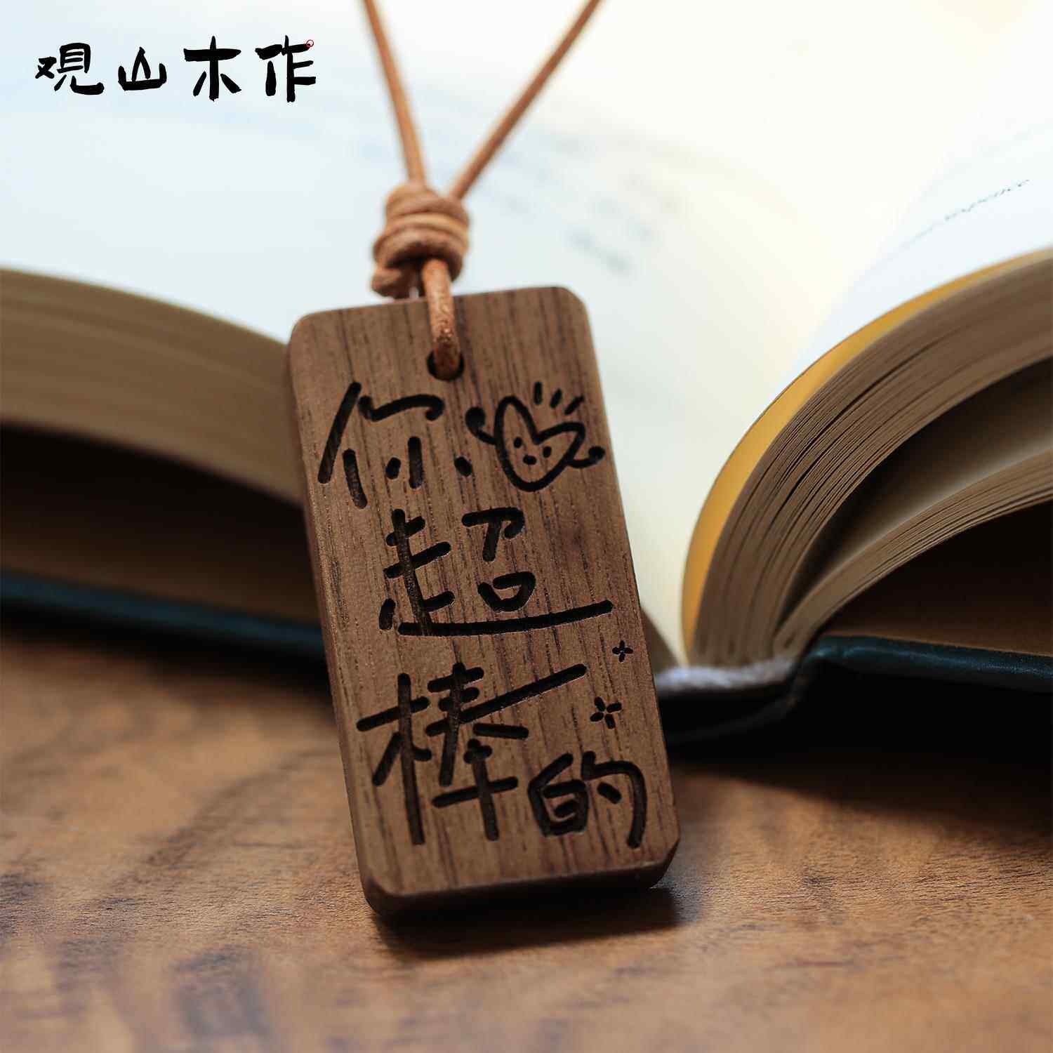 观山木作你超棒的黑胡桃实木雕刻车钥匙汽车挂件包挂小木牌挂牌钥
