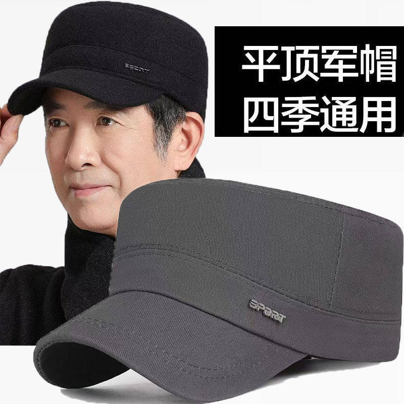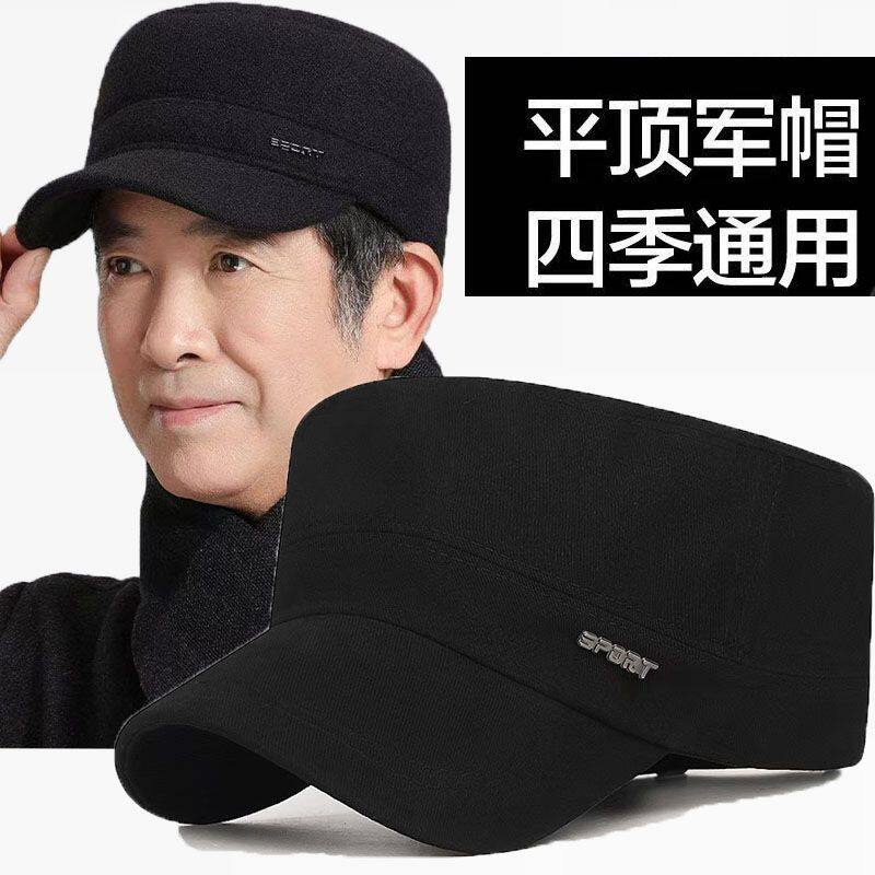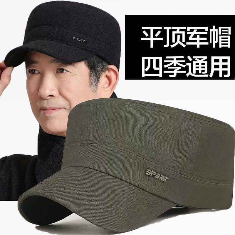 鸭舌帽四季春夏防晒平顶防晒中老年爸爸男士纯棉外休闲帽子