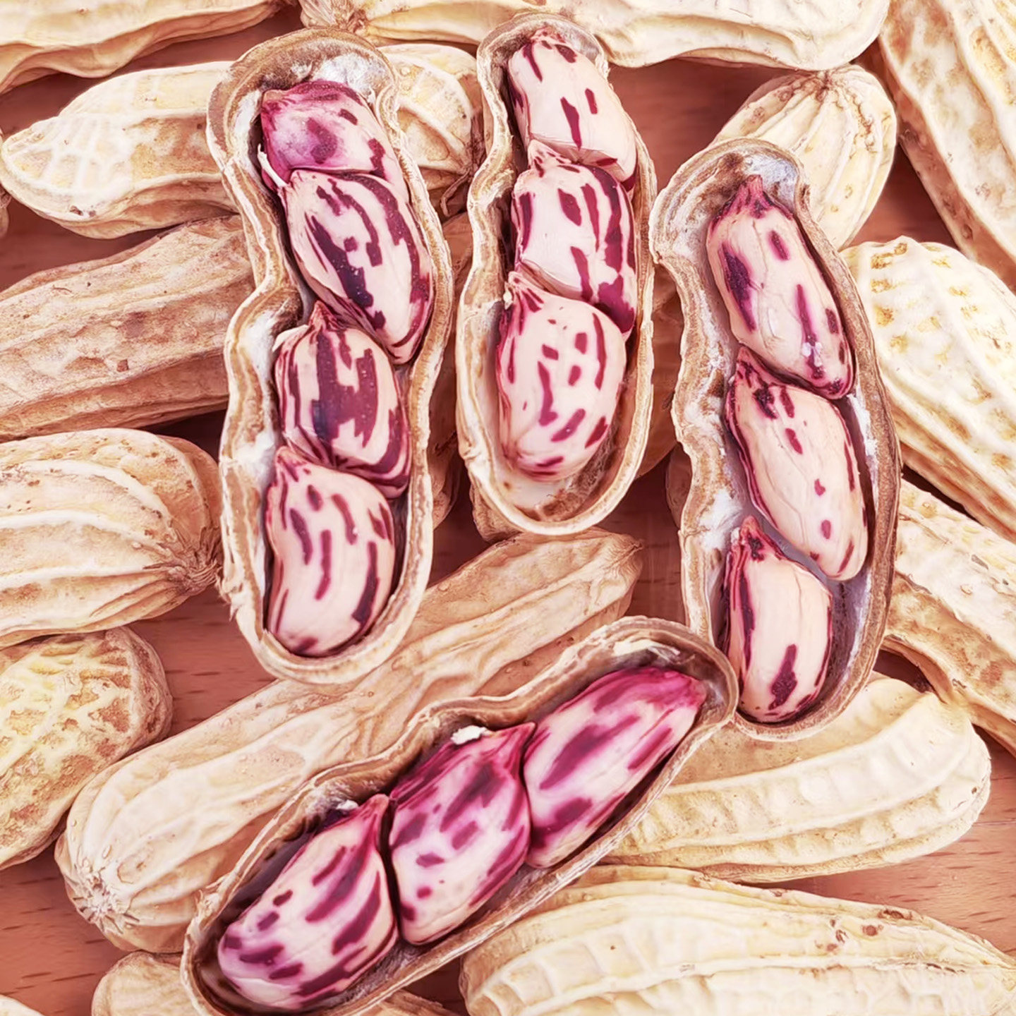新鲜红皮带壳生花生四粒红花生米农家自种晒干货高产花生红皮花生
