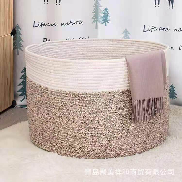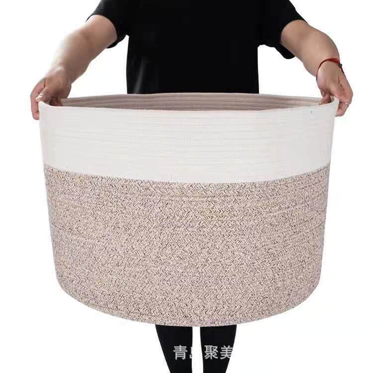 棉线编织大尺寸大容量收纳筐杂物筐脏衣篮玩具可折叠收纳筐