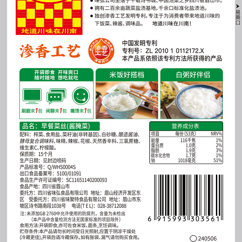 川南早餐菜丝53g榨菜小咸菜四川眉山清淡下饭菜口口脆小包袋装