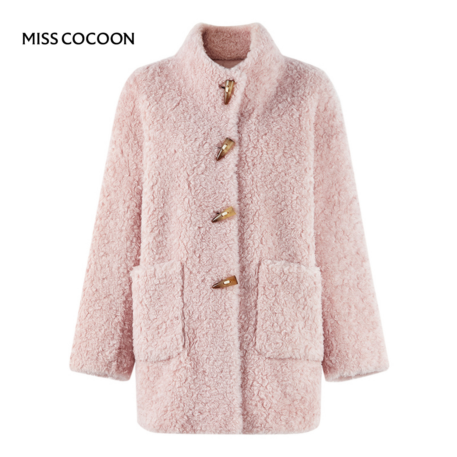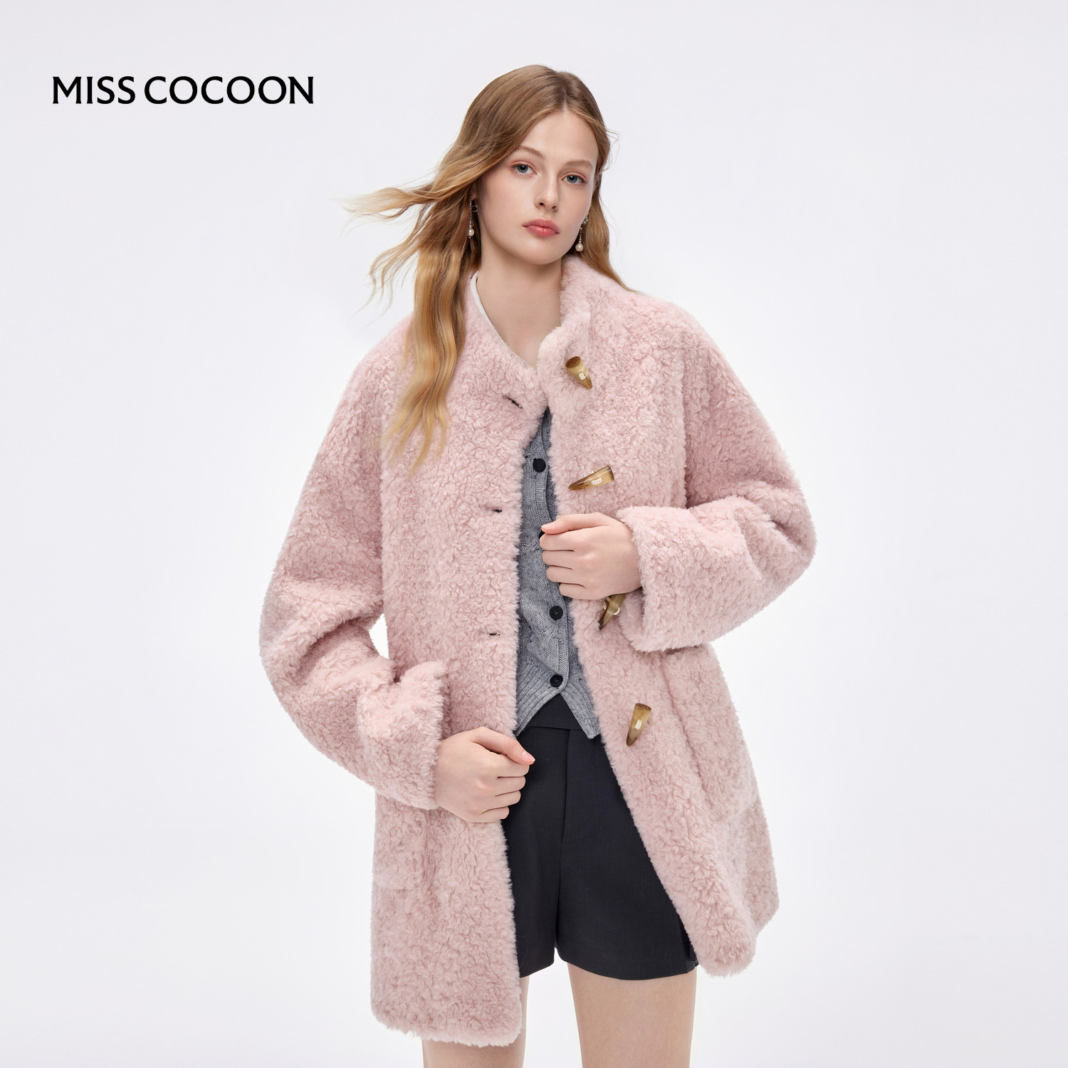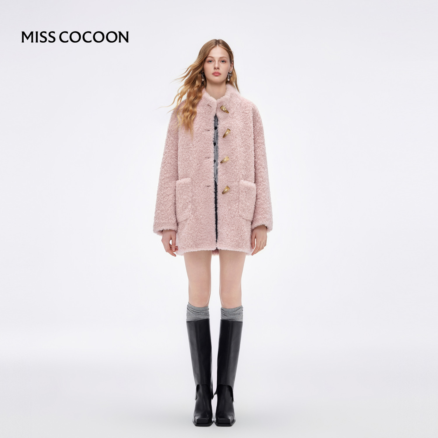 MISSCOCOON可可尼牛角扣圣诞外套女2025冬季新款绵羊毛皮草大衣
