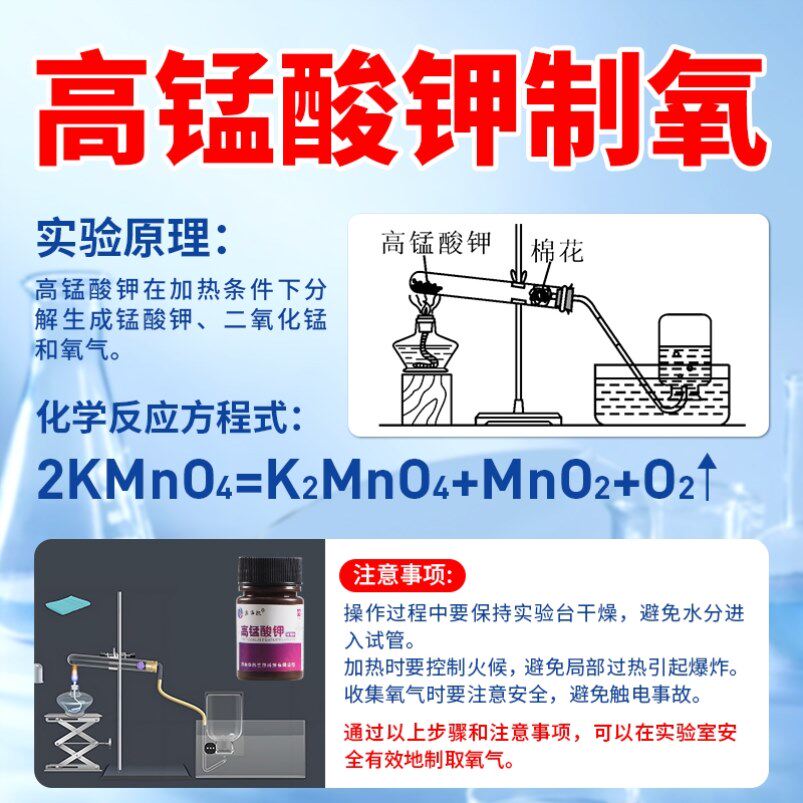 高锰酸钾粉末高纯度初中化学实验分析纯氧气制取实验室用器材全套