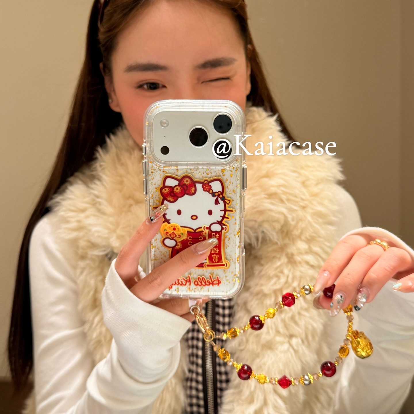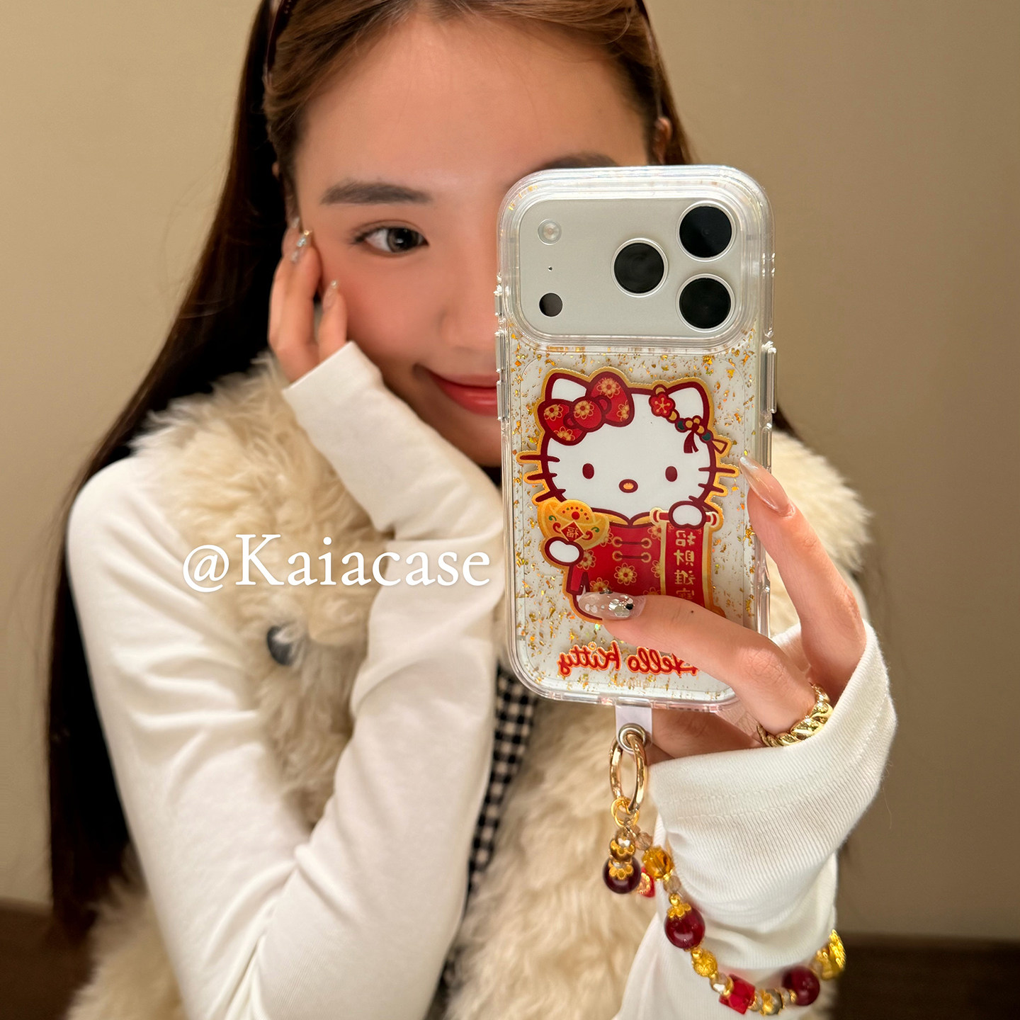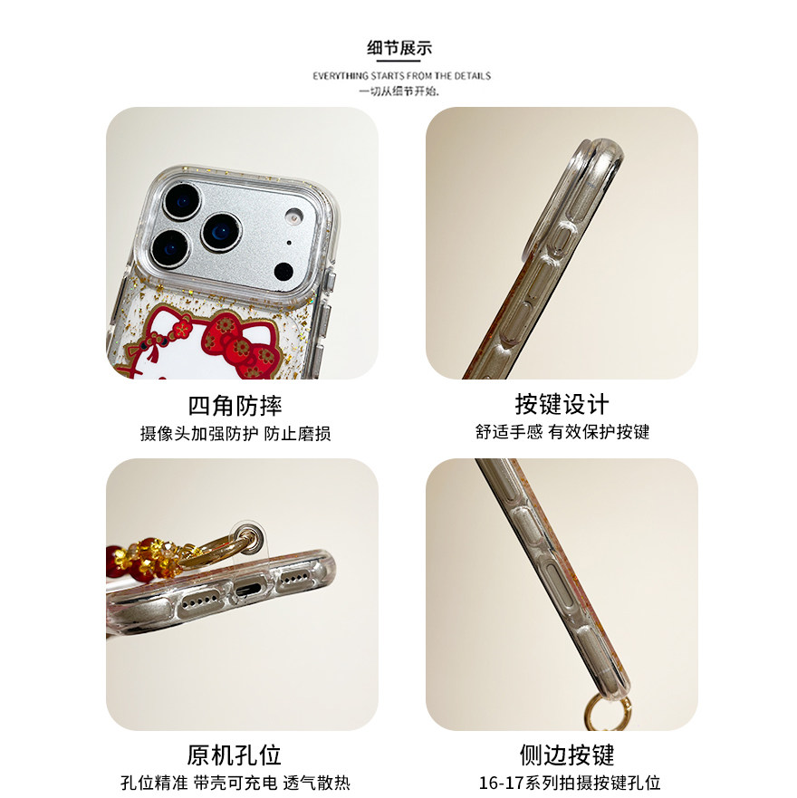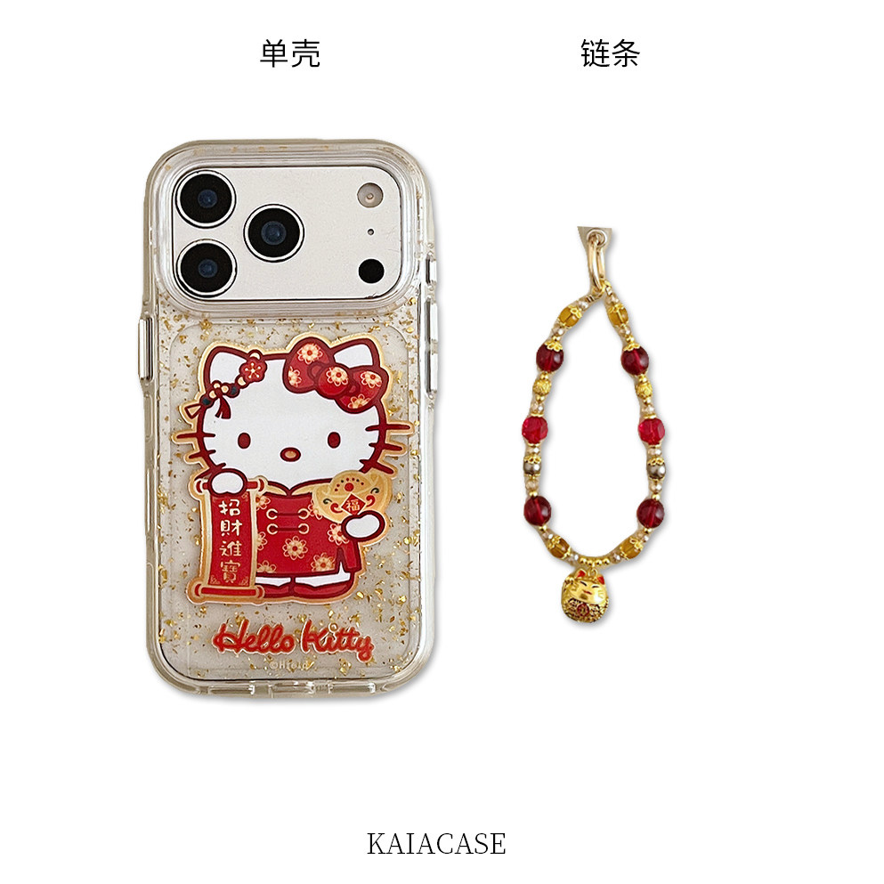 kaia 新年款金箔招财进宝哈喽kt适用苹果17promax手机壳iphone16pro新款17女14pro带链条15pro全包防摔手机套