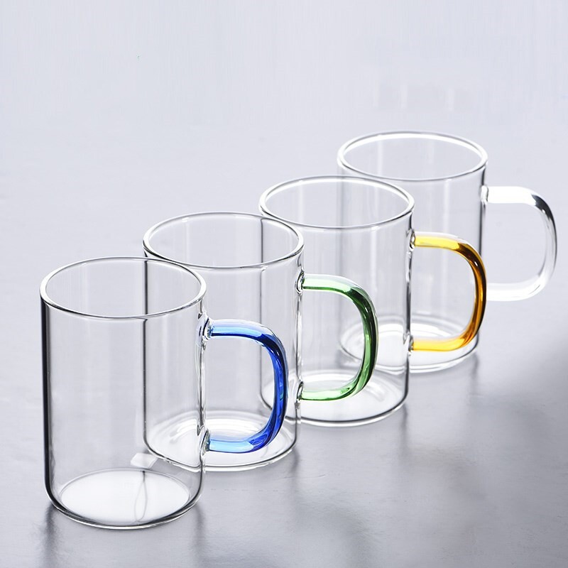 高硼硅玻璃杯家用带把彩把水杯办公室杯男女泡茶杯手柄圆柱蓝色