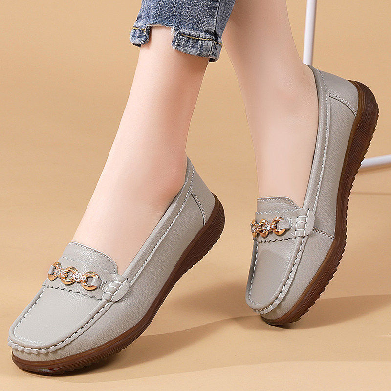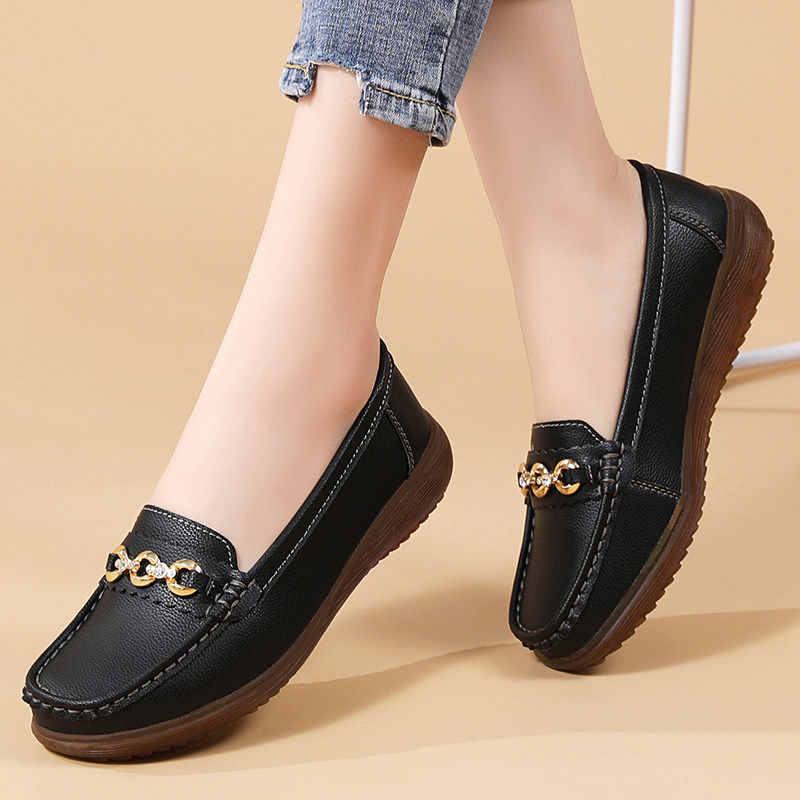 欧伦啄木鸟豆豆鞋女春秋款真皮软皮软面牛筋底平底单鞋子舒适厚底