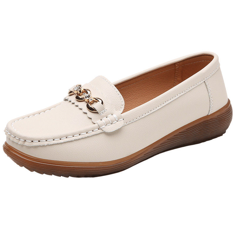 日泰头层牛皮女单鞋秋季厚底小皮鞋百搭通勤鞋妈妈软底真皮乐福鞋